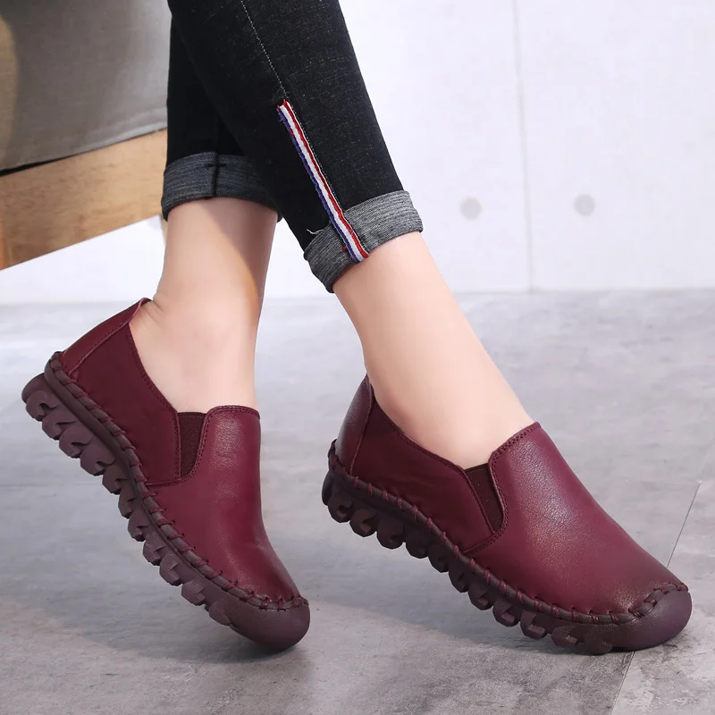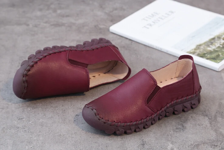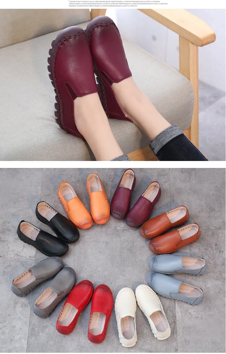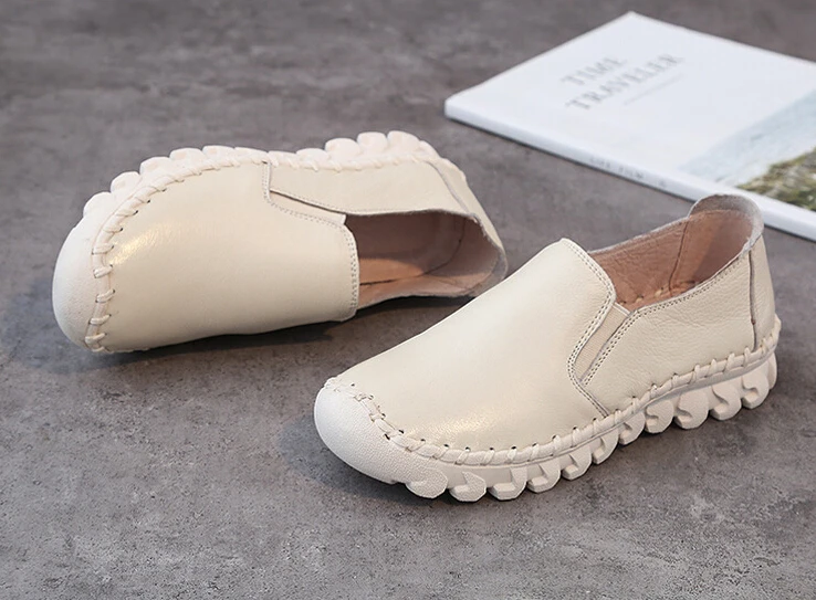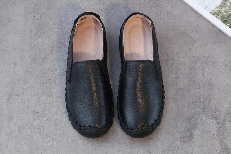 Новинка 2022 года; Женская обувь ручной работы; Обувь для мам из натуральной кожи на плоской подошве без застежки; Женские лоферы; Мягкая повседневная женская обувь на плоской подошве