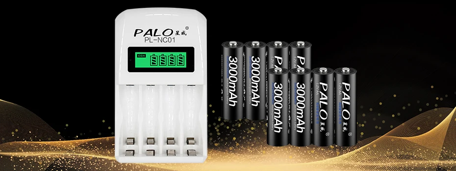 Аккумуляторы PALO 3000 мА ч, Ni-MH, AA, зарядное устройство с ЖК-д...