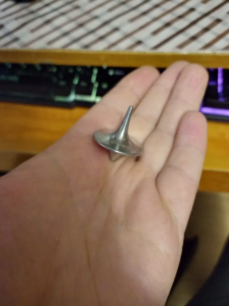 В какой то момент я испугался того, что нахожусь во сне, но волчок всё же упал. Увесистая штучка, приятная тяжесть, крутится долго. Рекомендую