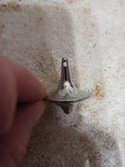Прикольный. Тяжёленький. Точно, как из фильма "Начало". Зачем-то отверстие есть. Наверное, можно повесить, как брелок. Надо наловчиться запускать, чтобы подольше крутился. Сразу не получалось. В объединённой посылке долетел быстро