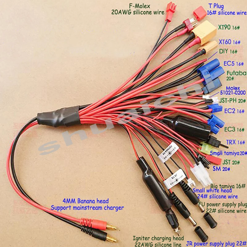 Многофункциональный Соединительный кабель 20 в 1 для зарядного устройства Lipo, штекер типа банан для XT60 90 JST,EC5,EC3,EC2,Tamiya,JR