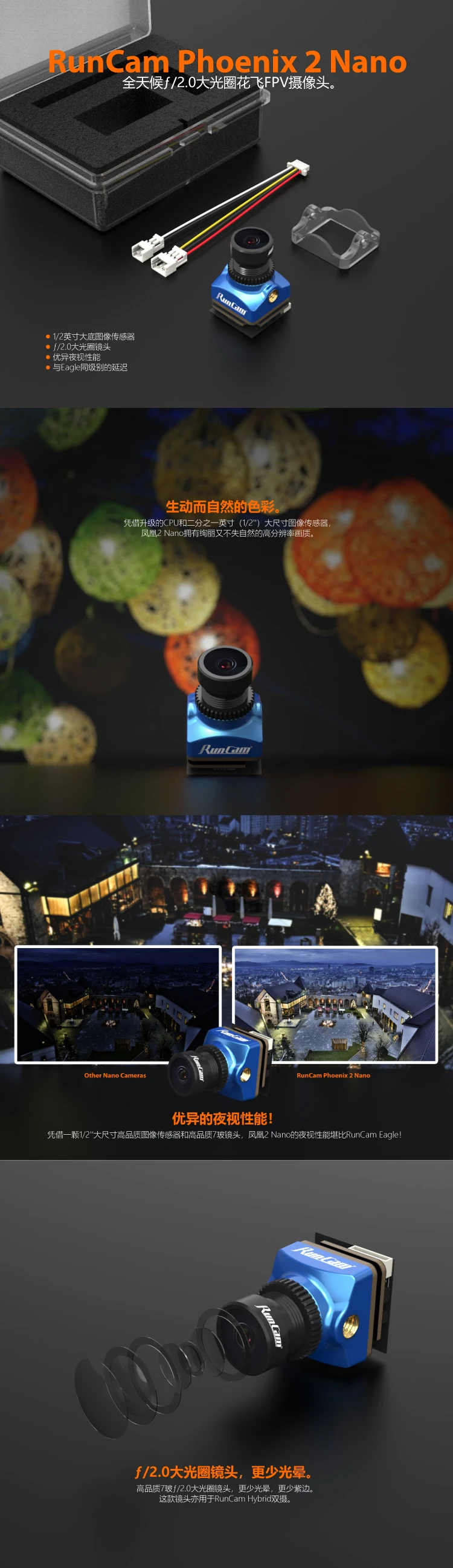 Благодаря 1/2 дюймовому высококачественному датчику изображения и высококачественному 7 стеклянному объективу ночное видение Phoenix 2 Nano сравнимо с RunCam Eagle!