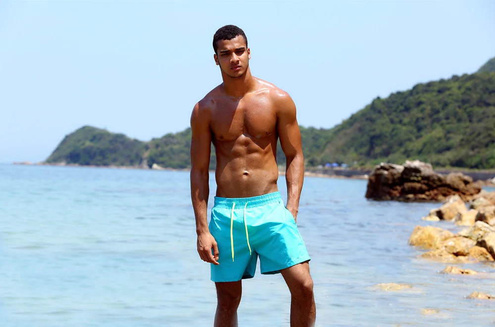 Летний пляжный купальник, мужские быстросохнущие купальники, мужские удобные дышащие пляжные шорты, сексуальный Однотонный мужской купальник
