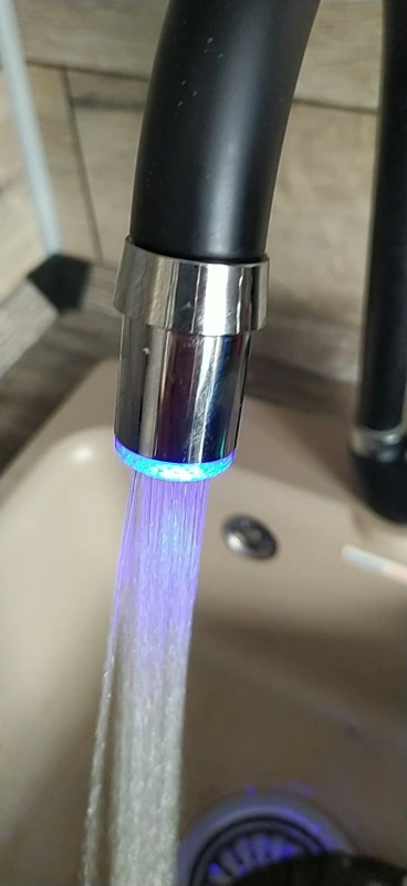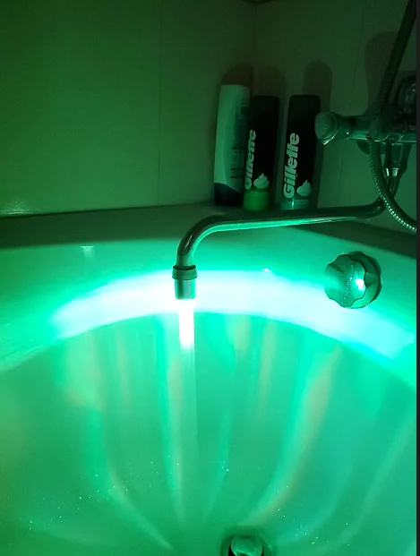 Быстрая доставка, светится прикольно. Показывает синим светом холодная вода. зелёным нейтрально, красный - горячая вода. Хотелось бы чтобы просто было как цветомузыка, так было бы прикольней)