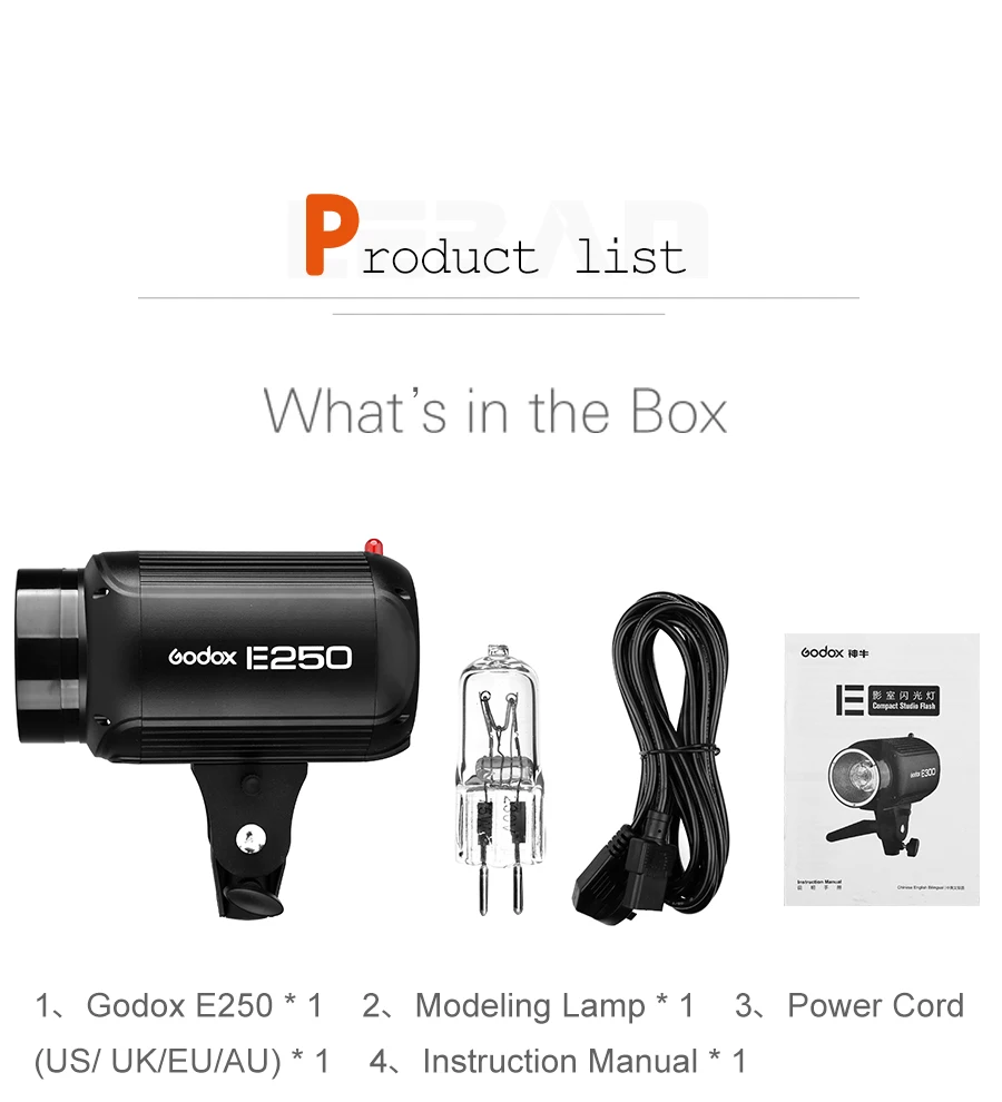 Godox E250 фотостудия Стробоскопическая фотовспышка с беспроводным управлением 250 Вт студийный светильник-порт для съемки небольших товаров