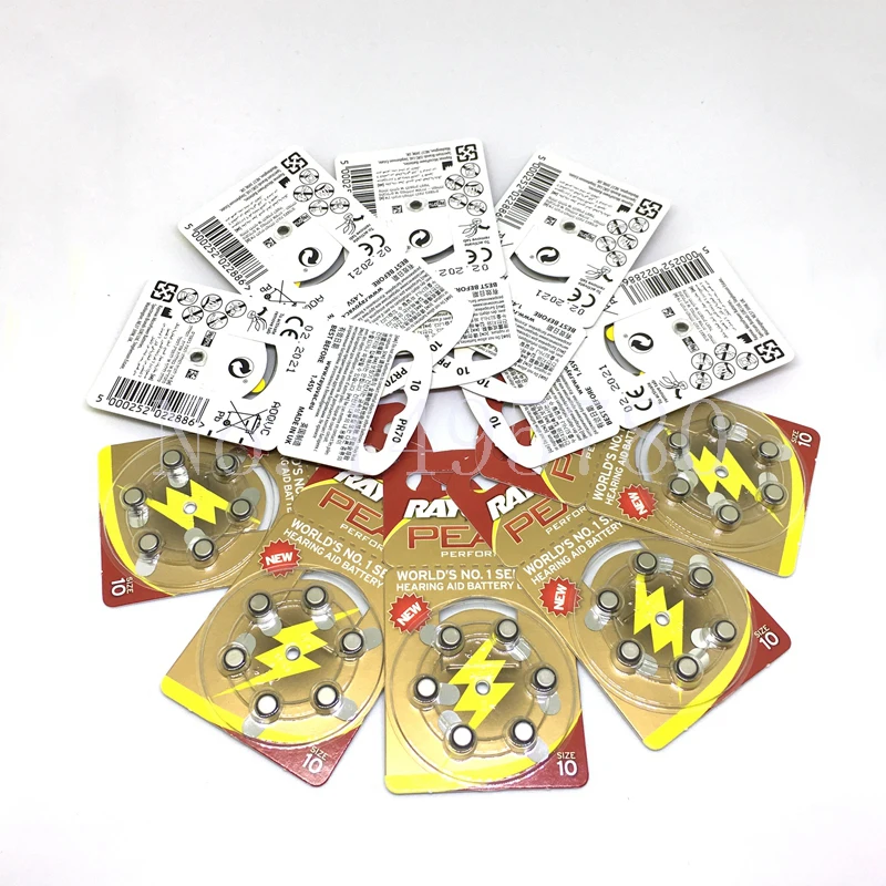 60 шт.Новый воздух цинка 1,45 V Rayovac пиковый цинковый воздушный слуховой аппарат батареи A10 10A ZA10 10 S10 60 шт слуховой аппарат батареи для слуховых аппаратов