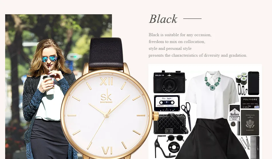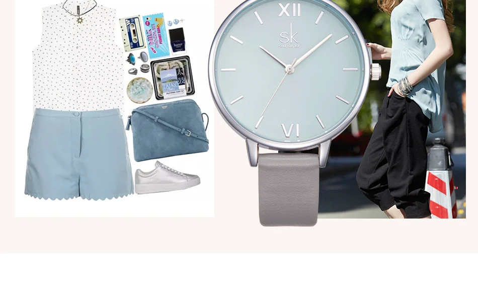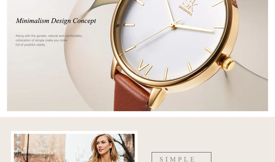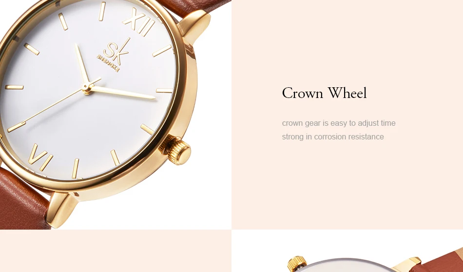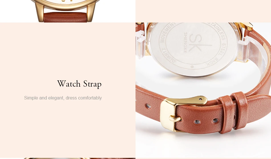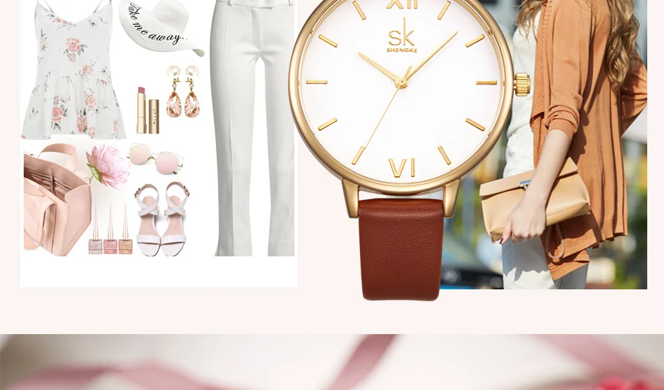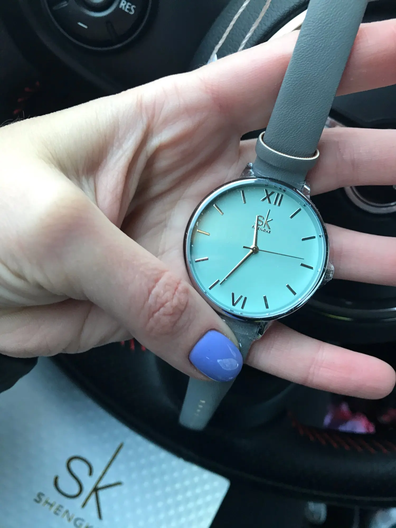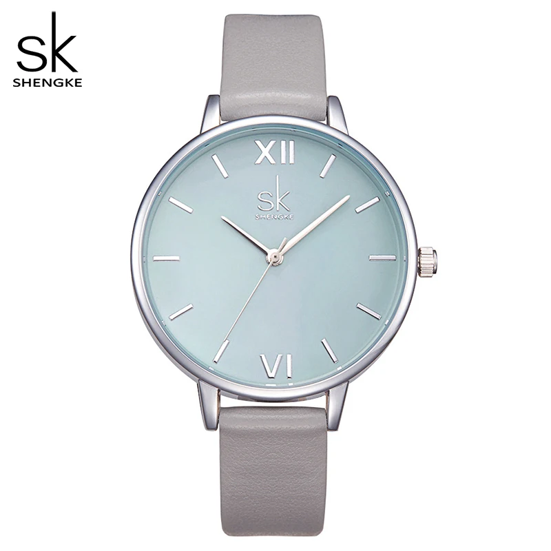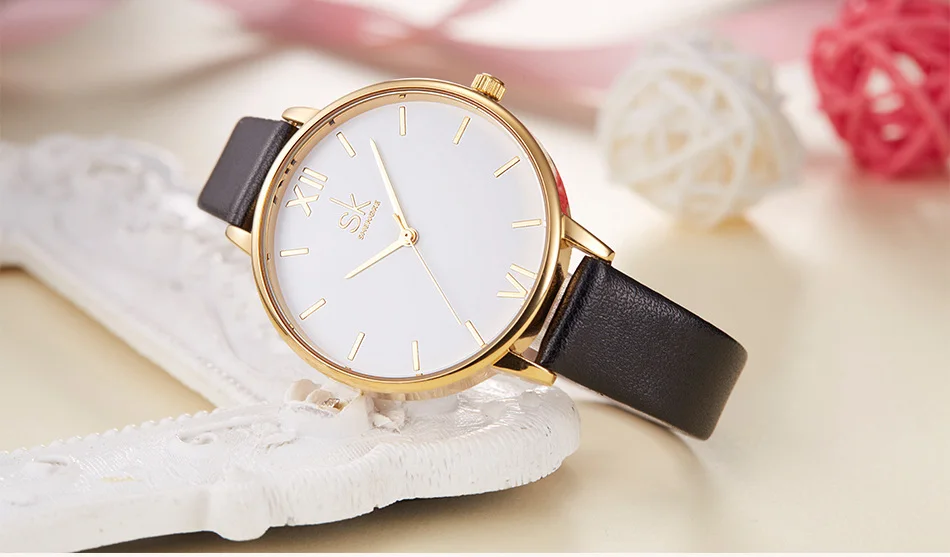 Часы наручные Shengke женские с кожаным ремешком, Модные Элегантные ультратонкие