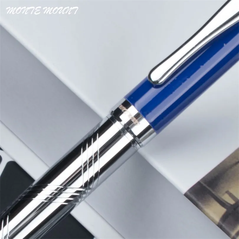 Масляная ручка для бизнеса и офиса, платиновая, из нержавеющей стали, с синей шляпой, для школы, офиса, пишущая шариковая ручка стержней