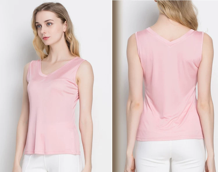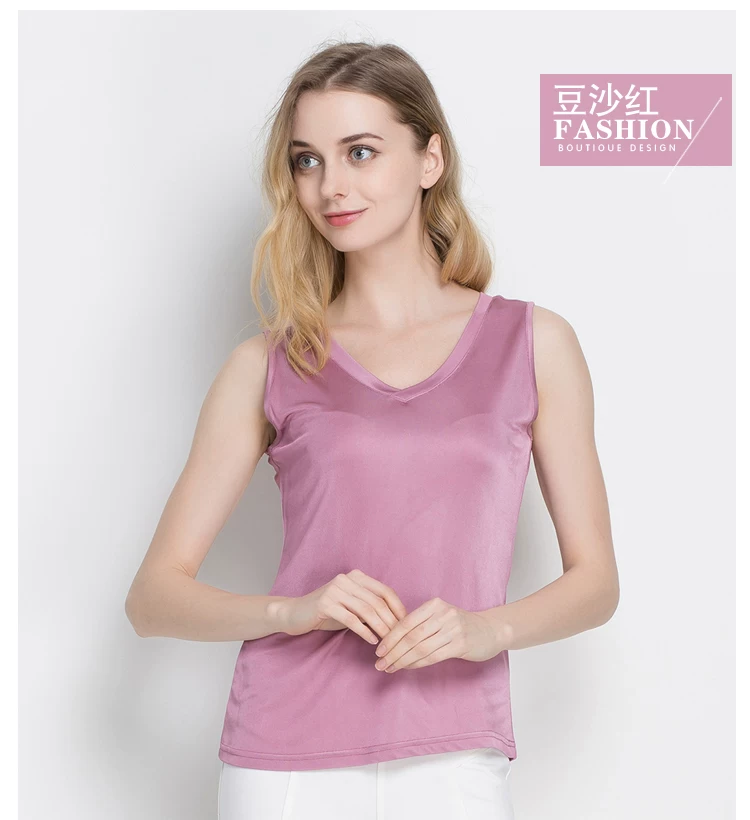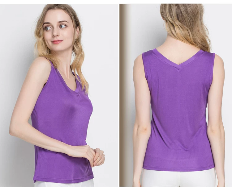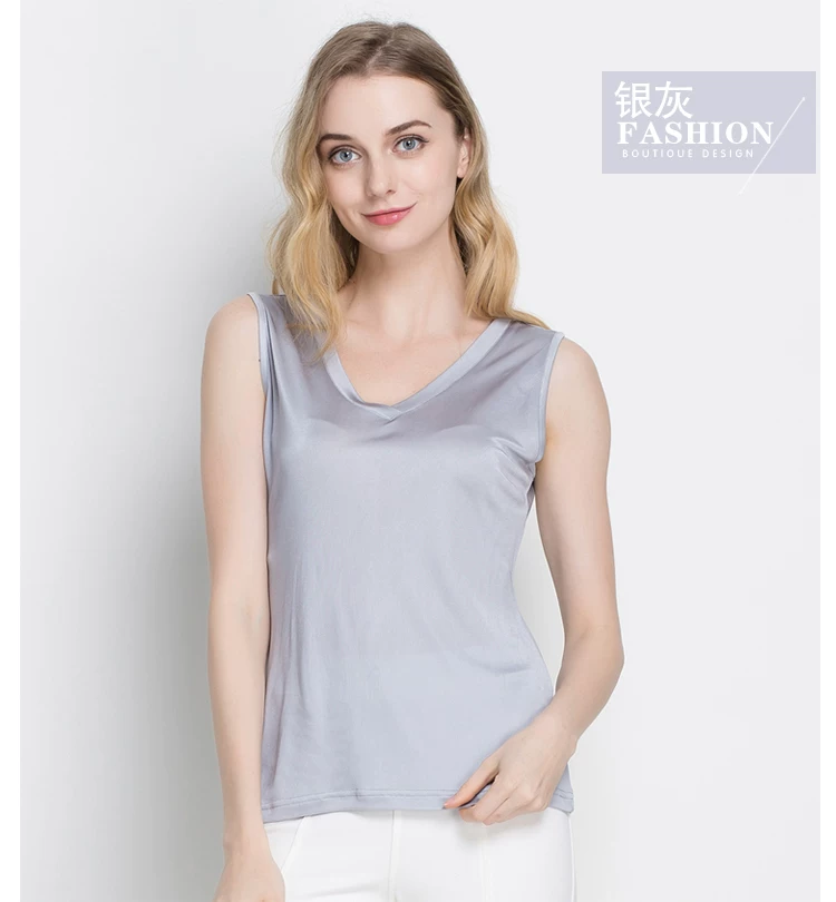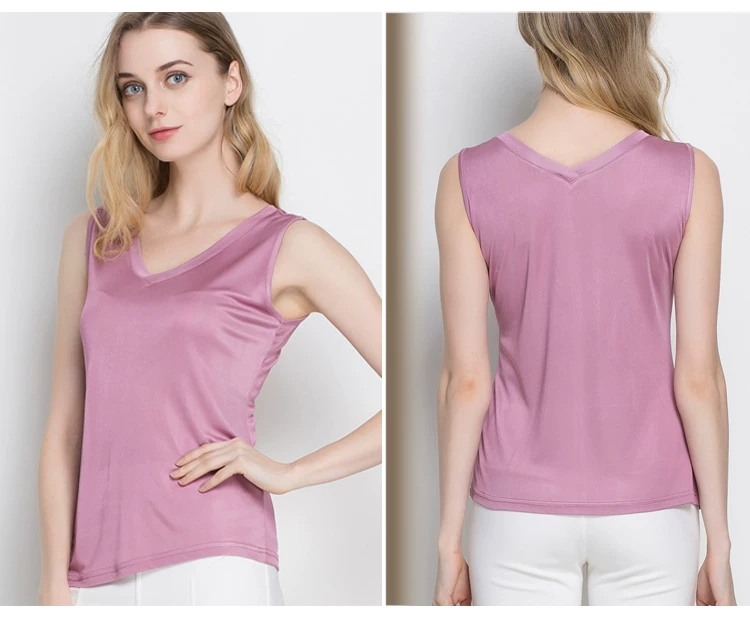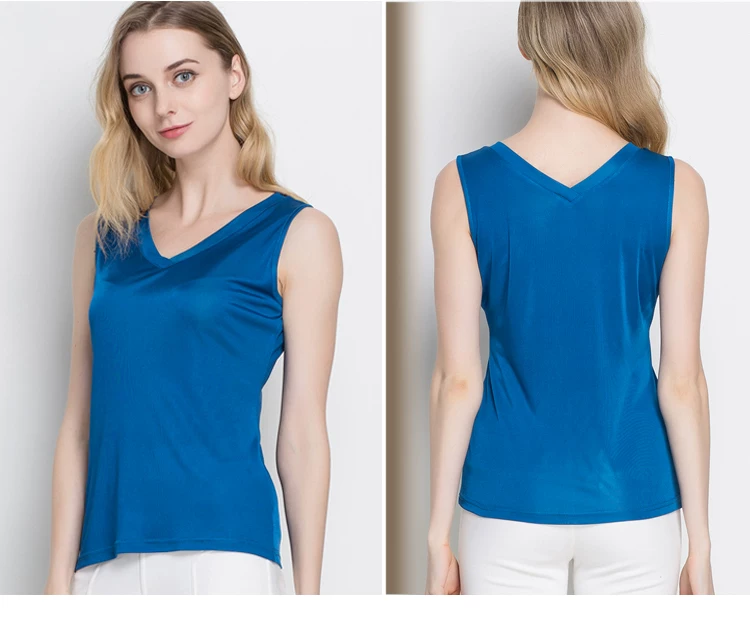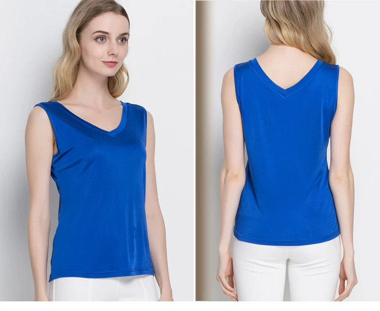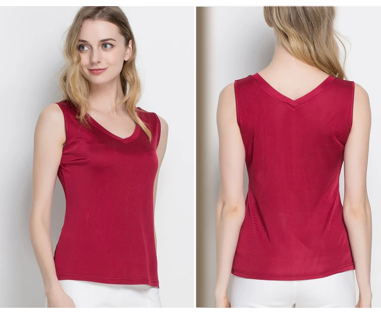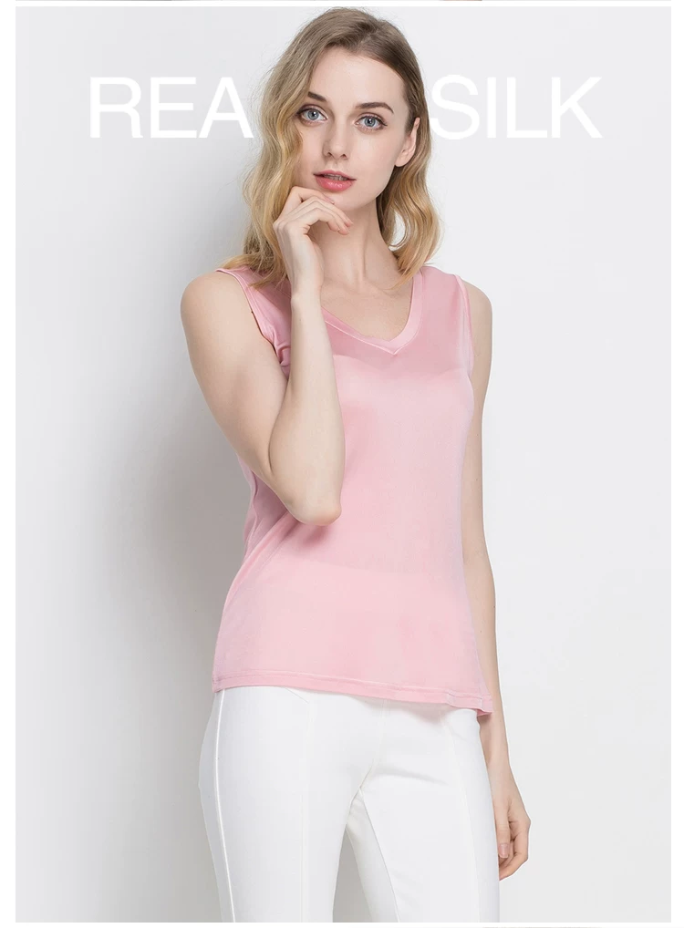 Женский трикотажный жилет из 100% шелка, летний топ без рукавов с двойным v-образным вырезом