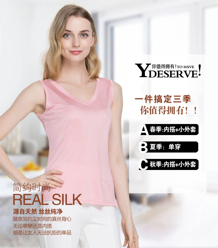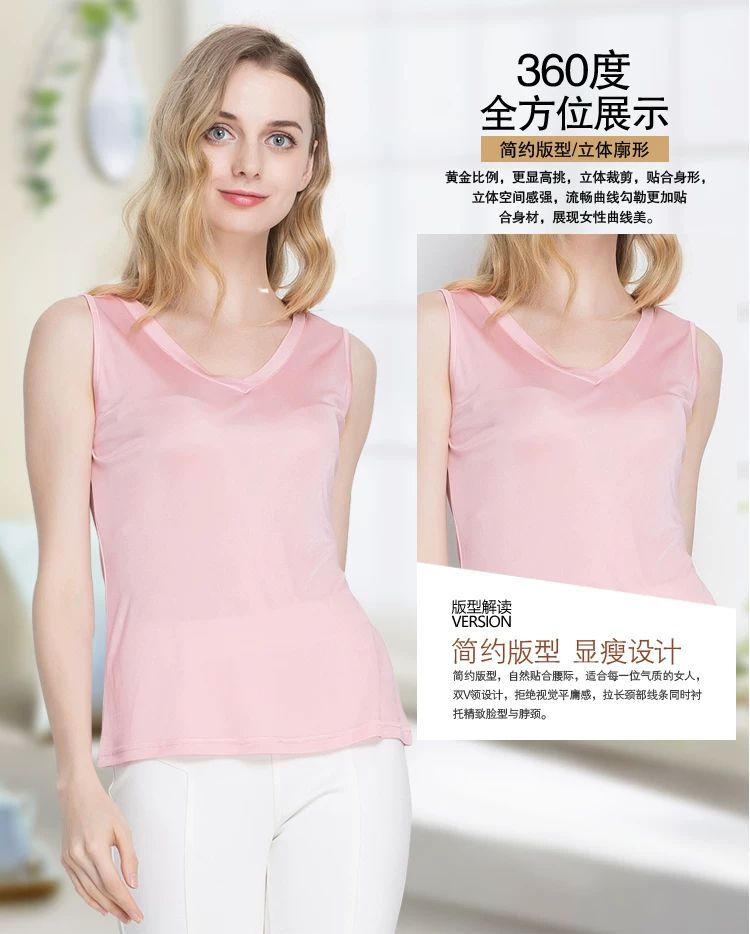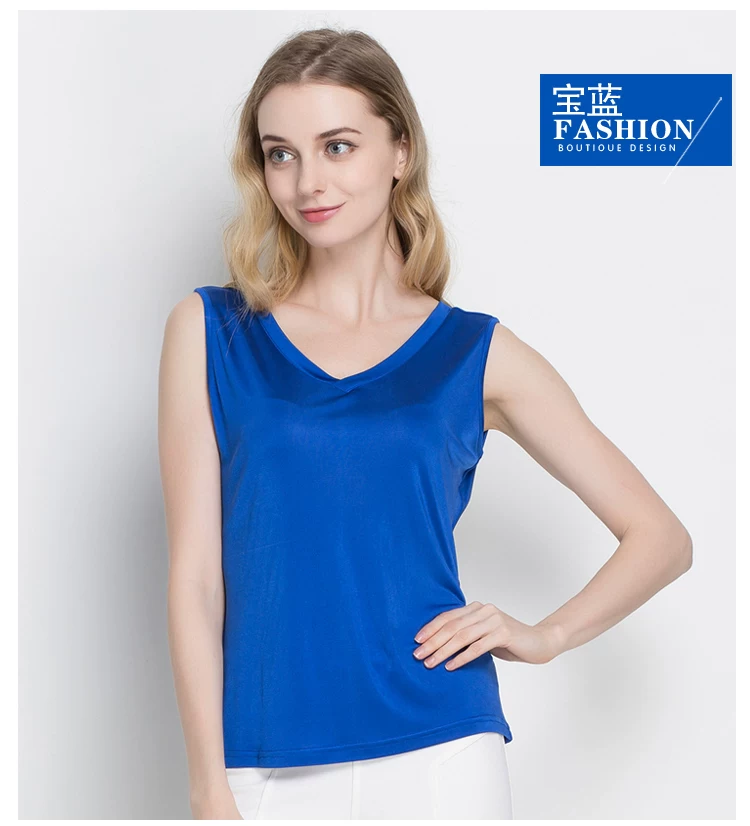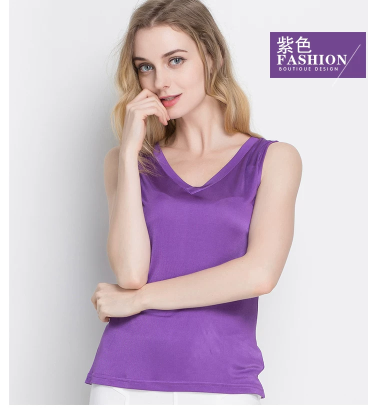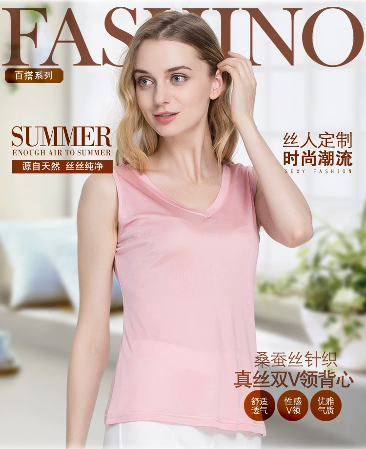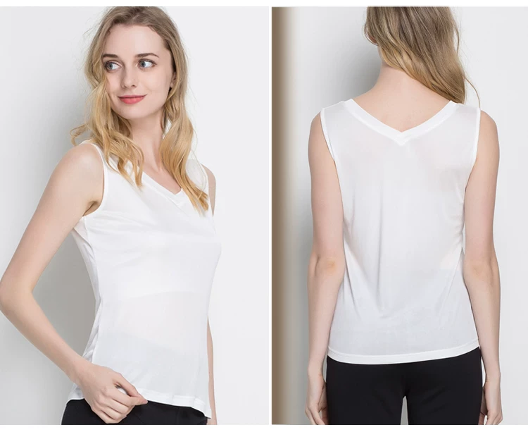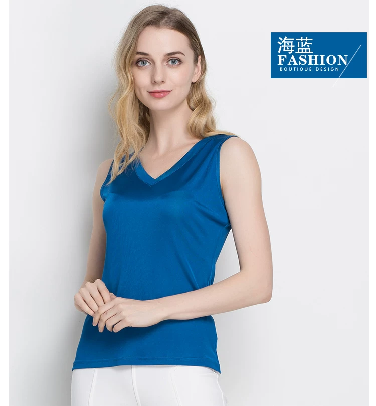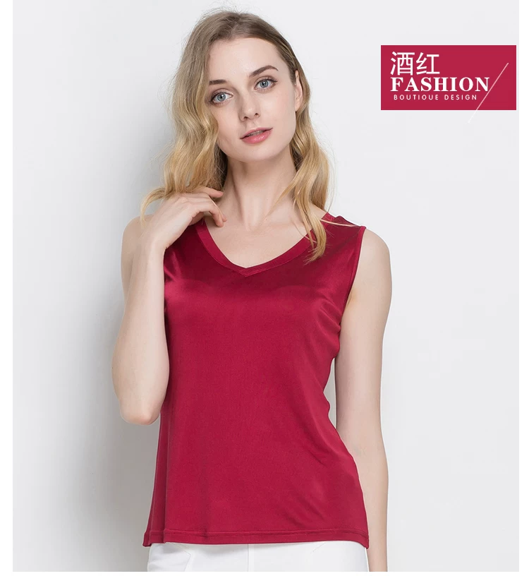 Женский трикотажный жилет из 100% шелка, летний топ без рукавов с двойным v-образным вырезом