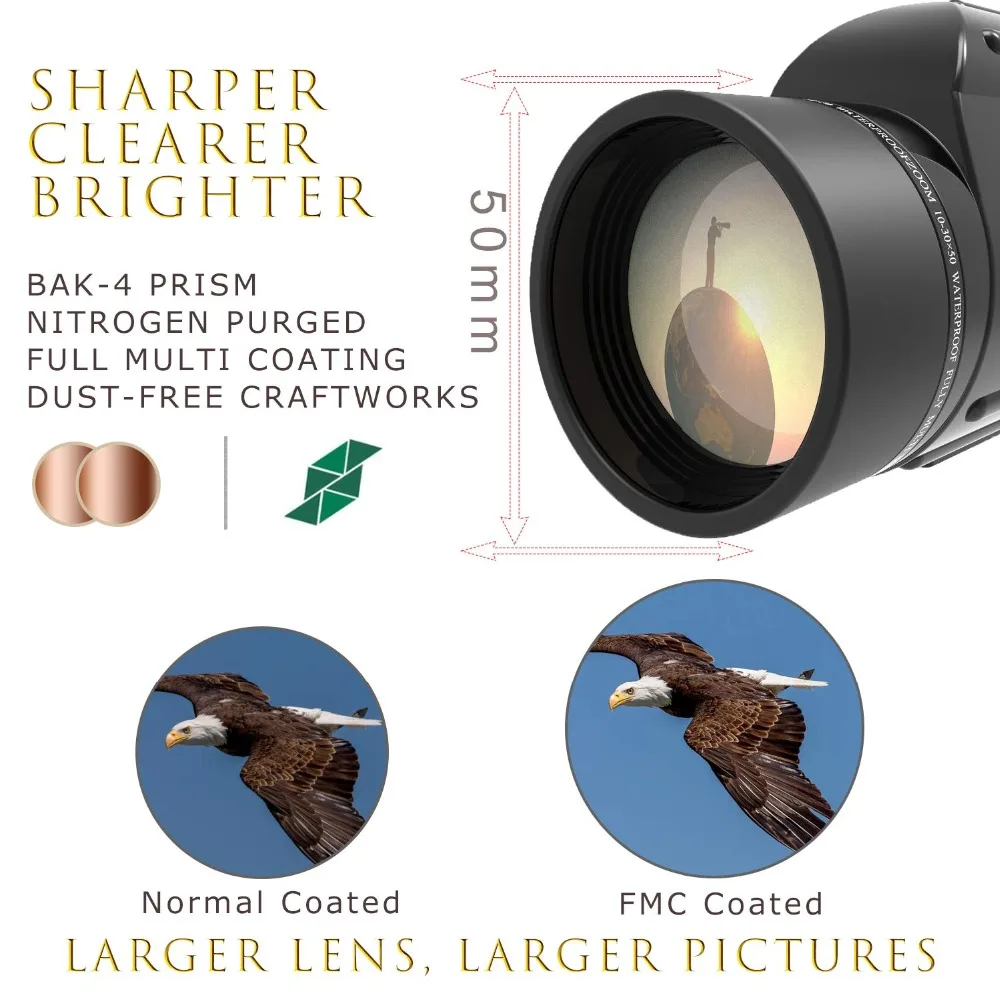 1,10-30X50 увеличение-получите более четкий и яркий диапазон обзора с объективом 50 мм-самый мощный ручной монокуляр в наличии