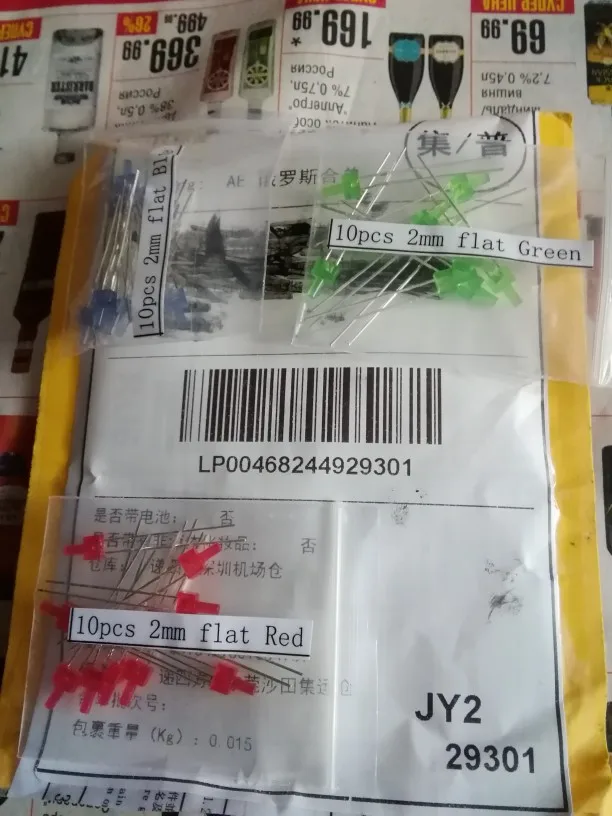 Светодиоды пришли спустя две недели, упаковахны стандартно в почтовую пупырку и пакетик, повреждения отсутствуют, качество соответствует описанию, слабее светят зелёные, а так для индикации само то. Продавцу респект! Рекомендую!