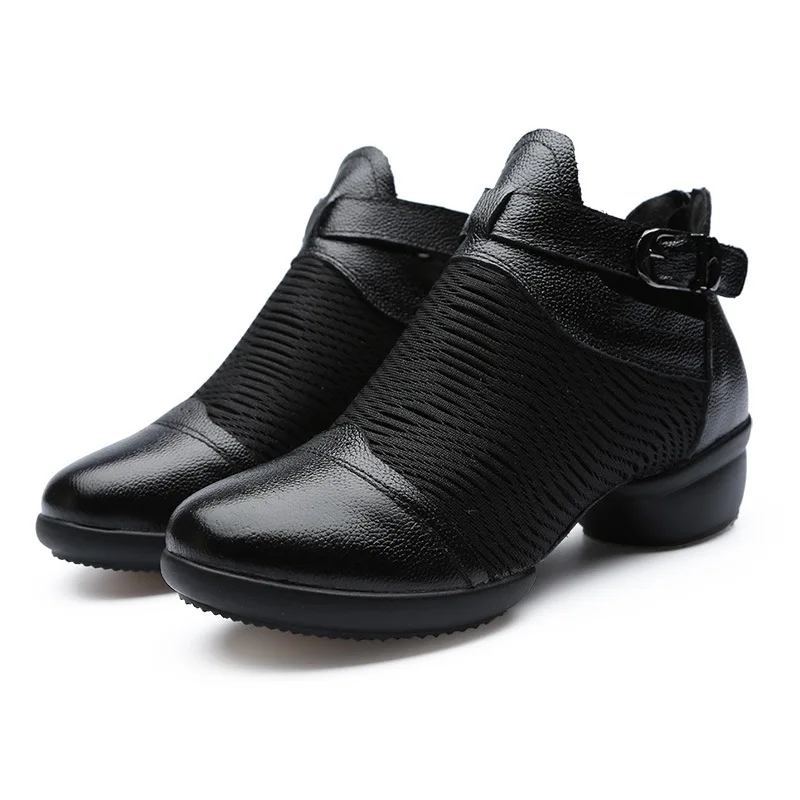 Кроссовки женские кожаные с мягкой подошвой и квадратной пряжкой