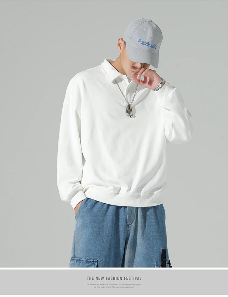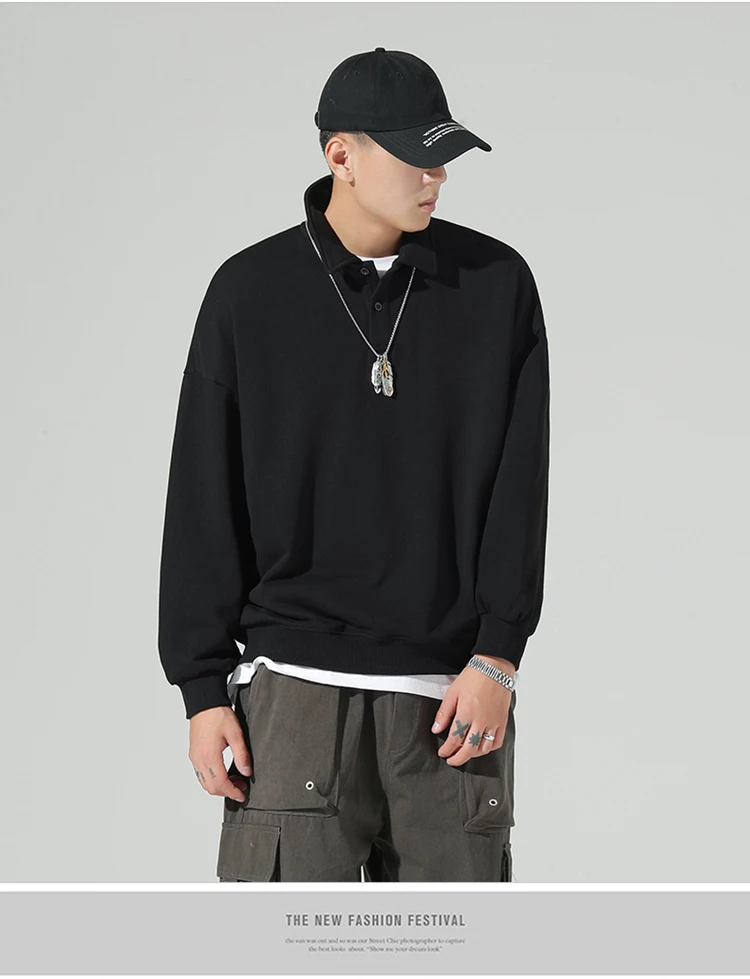 Новые модные мужские футболки-поло с длинными рукавами однотонная повседневная обувь мужские поло одежда негабаритных уличной моды Harajuku футболки-поло рубашки S-3XL