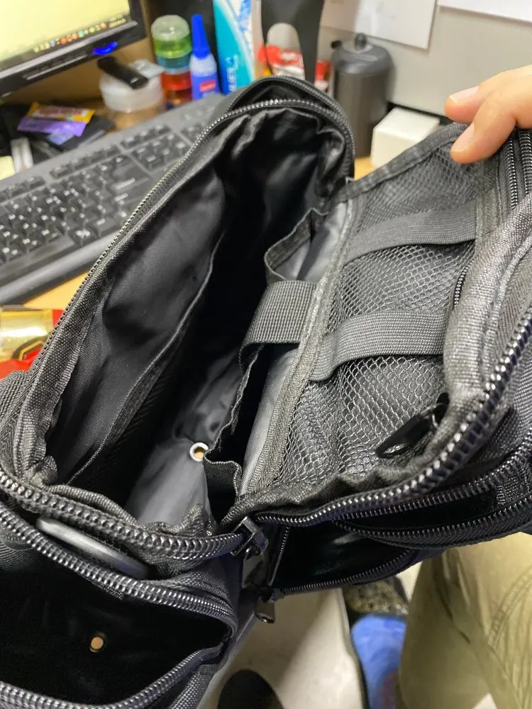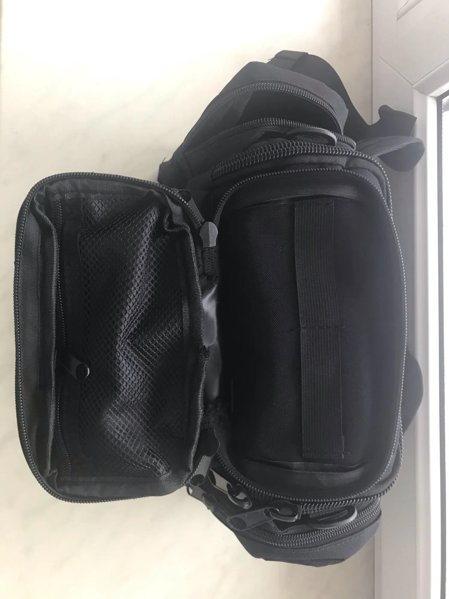 Отличная сумка, буду использовать для работы, походов и тд. Карабины на фото мои. Сумка довольно вместмтельная, много секций и карманов, очень хорошо прошита. Есть ремень внутри, но фурнитура у него тонкая пластиковая, в целом она и на поясе крепится надёжно.