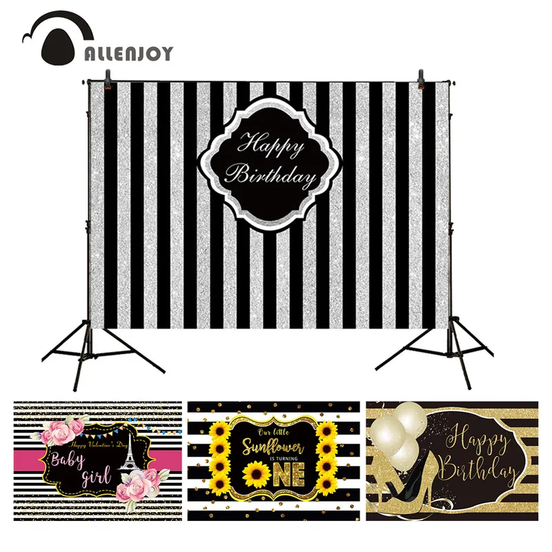 Фон для фотосъемки Allenjoy с днем рождения черная серебряная полоса фоны для фотографий фоны для фотосъемки