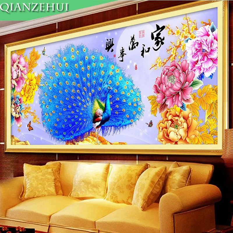 QIANZEHUI, алмазная вышивка своими руками, круглые алмазы для дома и синего павлина полная Стразы 5D алмазная живопись, вышивка крестиком