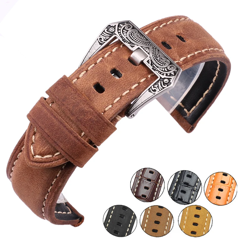 Итальянский ремешок для часов из натуральной кожи, толстый мягкий браслет ручной работы для часов Panerai со стальной пряжкой в стиле ретро, 22 мм 24 мм