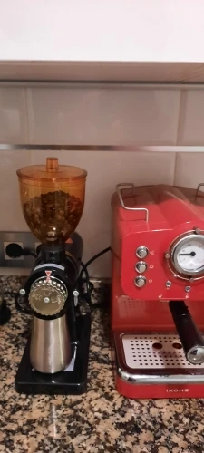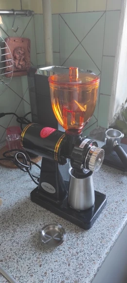 Быстрая доставка и поступление. Разделенная оранжевая чаша (не важно) Хорошая мельница, возможна мелкая шлифовка. Прямое распределение в двери фильтра эспрессо очень грязный, потому что проекции во всех направлениях. Очень хорошая мельница по цене, чтобы заказать мягкие методы, не expresso live.