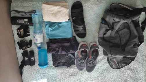 Сумка и правда хорошая. Влезли впритык кроссовки 42,шорты,футболка,тапки,полотенце небольшое,гель для душа,пояс,перчатки,вода 1,5л,всё. Перчатки снарядные не влезут