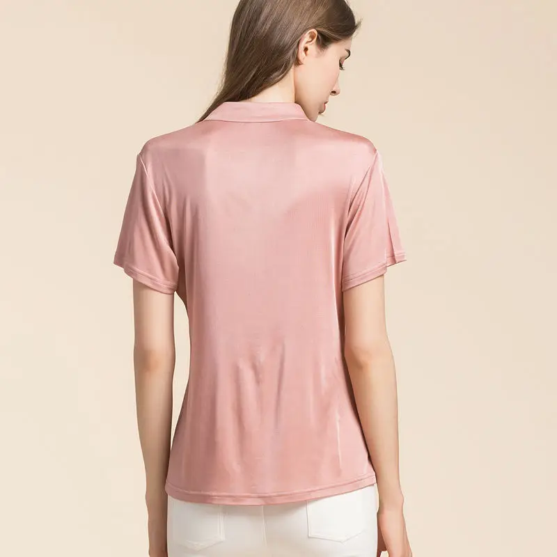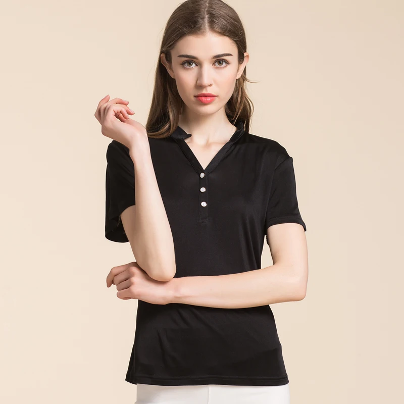 SuyaDream женская футболка 100% натуральный шелк рубашка поло Короткий воротник стойка джемпер 2022 Осень Новый Белый Черный размера плюс