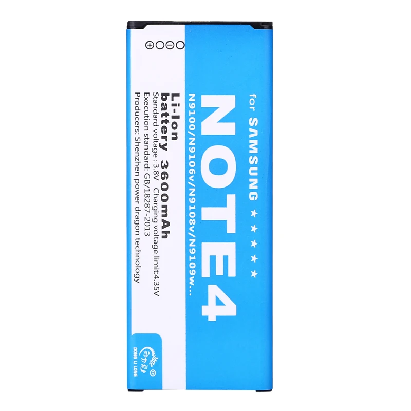 1. Литий-ионный аккумулятор: NOTE 42. Напряжение: 3,8 в3. Емкость: 3600 мАч4. Используется для: Samsung Galaxy Note 4 N9100 N910H N910C N910U N910F N910FQ SCL24 SC-01G N910FDetc5. Безопасность и окружающая среда: функции двойной защиты. Двойная электрическая плата IC и PCB защищает разряд заряда и короткое замыкание.6. Наш аккумулятор имеет тот же размер, что и оригинальный аккумулятор.7: Сделано в КитаеОбратите внимание:> Перед использованием необходимо полностью зарядить аккумулятор.> Временная короткая Емкость новой батареи будет возникла из-за того, что она не используется в течение длительного времени, это нормально, общая емкость будет восстановлена через использование в течение 3-5 раз.> Когда впервые получите аккумулятор, используйте его, заряжайте в течение 10 часов в течение первых трех раз, используйте его снова, затем его нужно заряжать только около 5 часов для нормального использования.> Не используйте уступающее зарядное устройство для подзарядки этого аккумулятора в случае повреждения аккумулятора.> Не разбирайте и не меняйте структуру аккумулятора.> Не вставляйте аккумулятор в зарядное устройство слишком долго.> Не подвергайте батарею воздействию влаги и воды, не ставьте ее в условиях высокой температуры.> Не воздействует на аккумулятор.> Положите его в недоступное для детей место.> Лучшая температура хранения 20 °C-5 °CПреимущество технологии Power dragon деловая батареяВопросы, требующие внимания 1. Интеллектуальное ядро: импортное интеллектуальное ядро ИС, более высокая точность стабильности защитной пластины, положить конец разрядке и короткому замыканию батареи, обеспечить безопасность, стимулировать жизненную силу, И оптимизировать характеристику разряда тока батареи.2. Супер длительный Режим ожидания: выбирайте очень большую емкость литиевых батарей, технологию предохранительного клапана батарей, режим ожидания на 10% дольше, чем оригинальная батарея, безопасная и надежная, стабильная работа, высокая емкость, длительное время ожидания;3. Дизайн: оригинальный размер батареи, бесшовное соединение, не волнуйтесь, потому что он идеально подходит.4. Литье под давлением низкого давления: Точная гарантия емкости каждого аккумулятора acme5. Многократная защита: встроенная PCM тройная защита, предотвращение перезаряда, разрядки, потока;Высоковольтная технология 638 в: истинная емкость полностью металлический контакт более прочный, чем оригинал7,72 часов испытаний на старение, чтобы обеспечить хорошее качество каждой батареиУстойчивость к высокой температуре на 8,45 градусов: устранение дефектов для обеспечения заряда каждой батареи9. Отсутствие эффекта памяти: поддержка быстрой зарядки, по сравнению с аналогичными продуктами более длительный срок службыУстойчивость к высокой температуре на 10,45 градусов: устранение дефектов для обеспечения заряда каждой батареи11,72 часов испытаний на старение, чтобы обеспечить хорошее качество каждой батареи12. Предохранительный клапан: используется Бессвинцовая технология SMT, не содержит ртути, свинца, кадмия и других вредных веществ, безопасная защита окружающей среды, предотвращает взрыв батареи