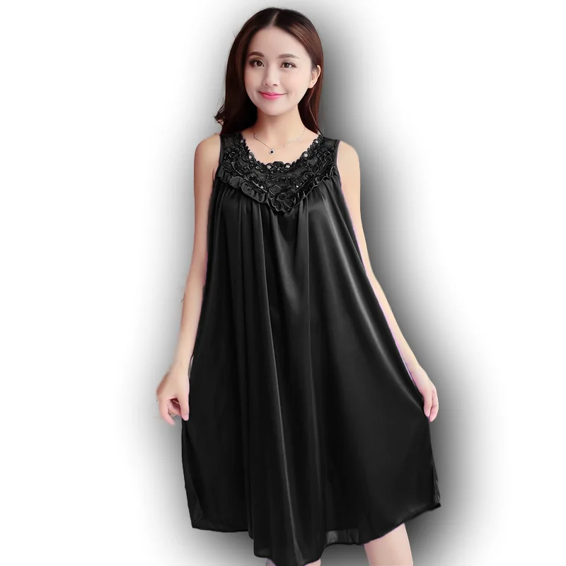 Летняя Сексуальная атласная ночная рубашка, женская шелковая ночная рубашка большого размера 4xl, женское кружевное нижнее белье, ночная рубашка без рукавов, ночные рубашки