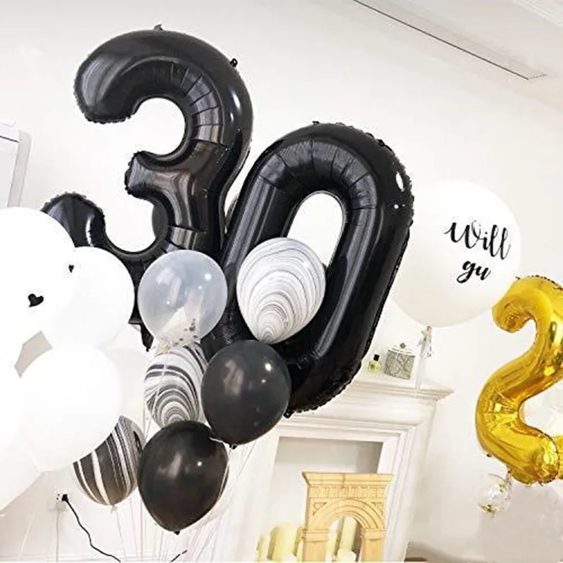 Черные воздушные шарики с днем рождения украшения цифровой воздушны...