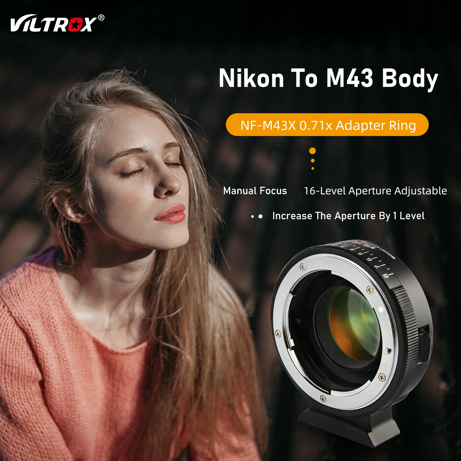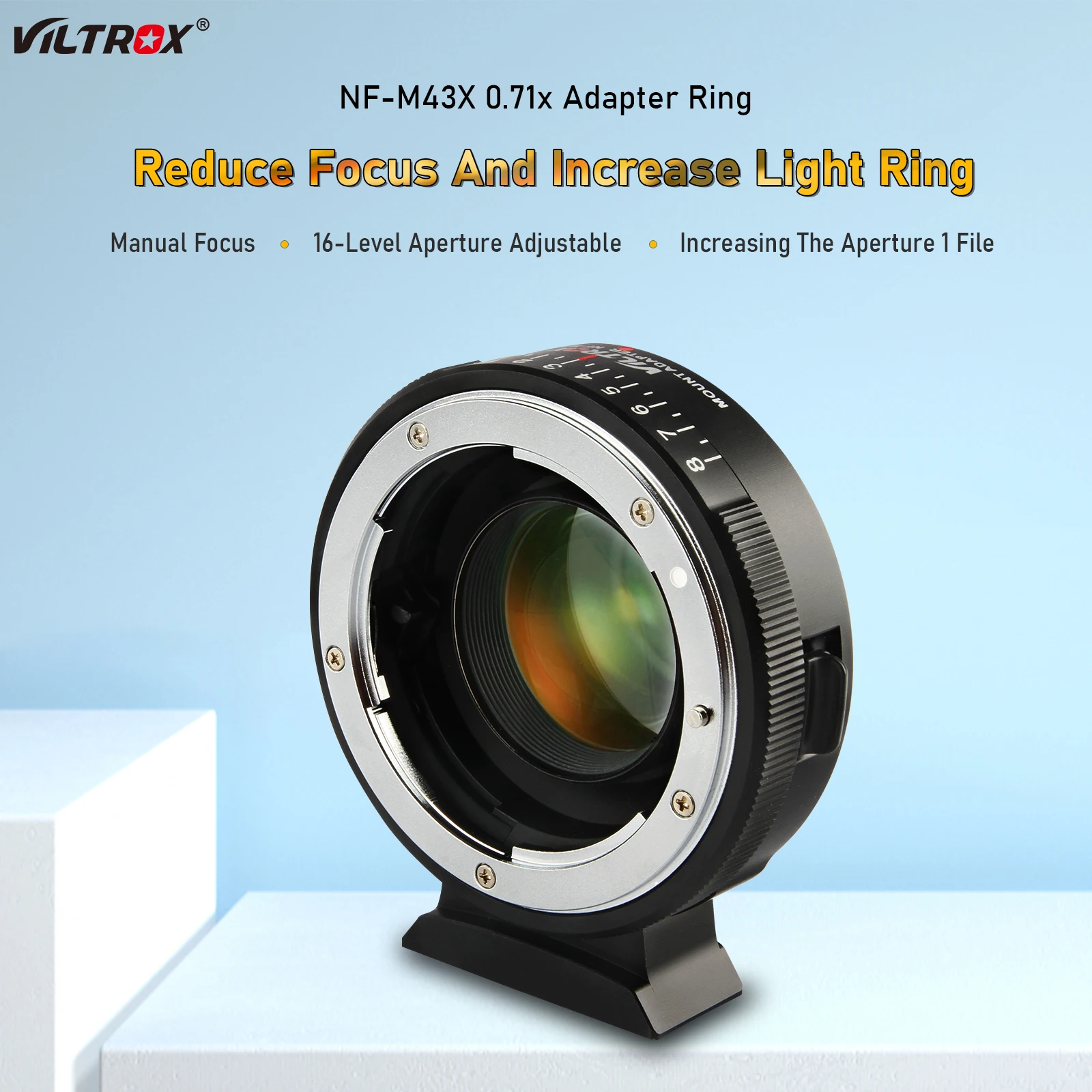 Адаптер для объектива Viltrox M43, редуктор фокусного расстояния, усилитель скорости, диафрагма 0,71x для объектива Nikon на камеру M43, Panasonic, Olympus