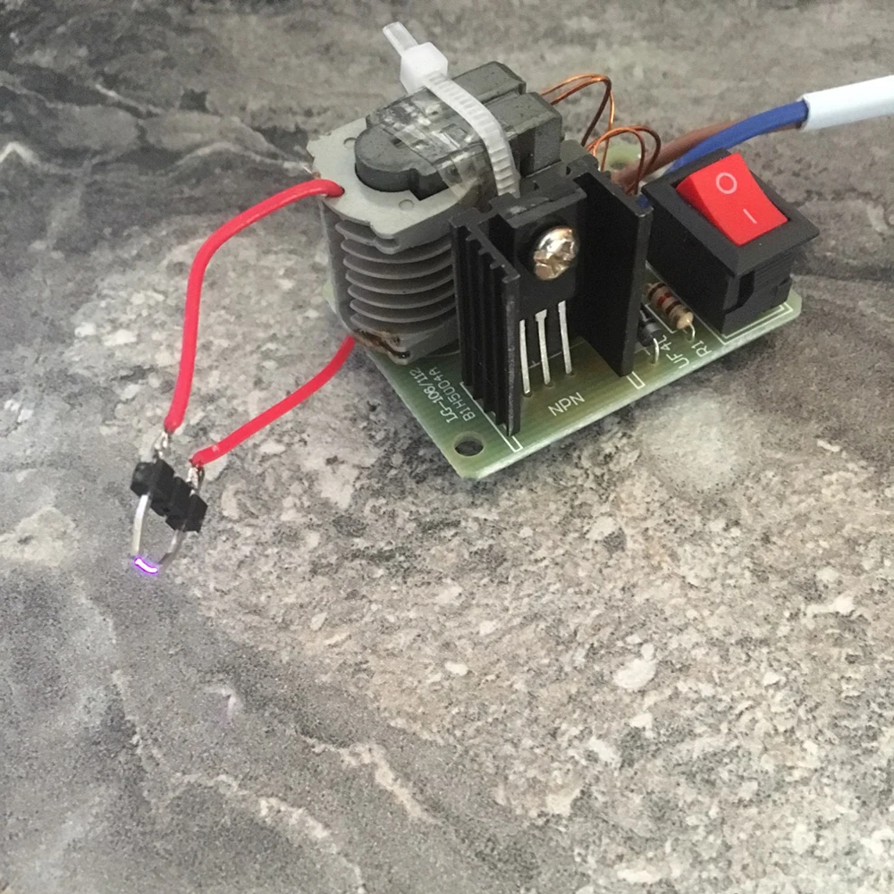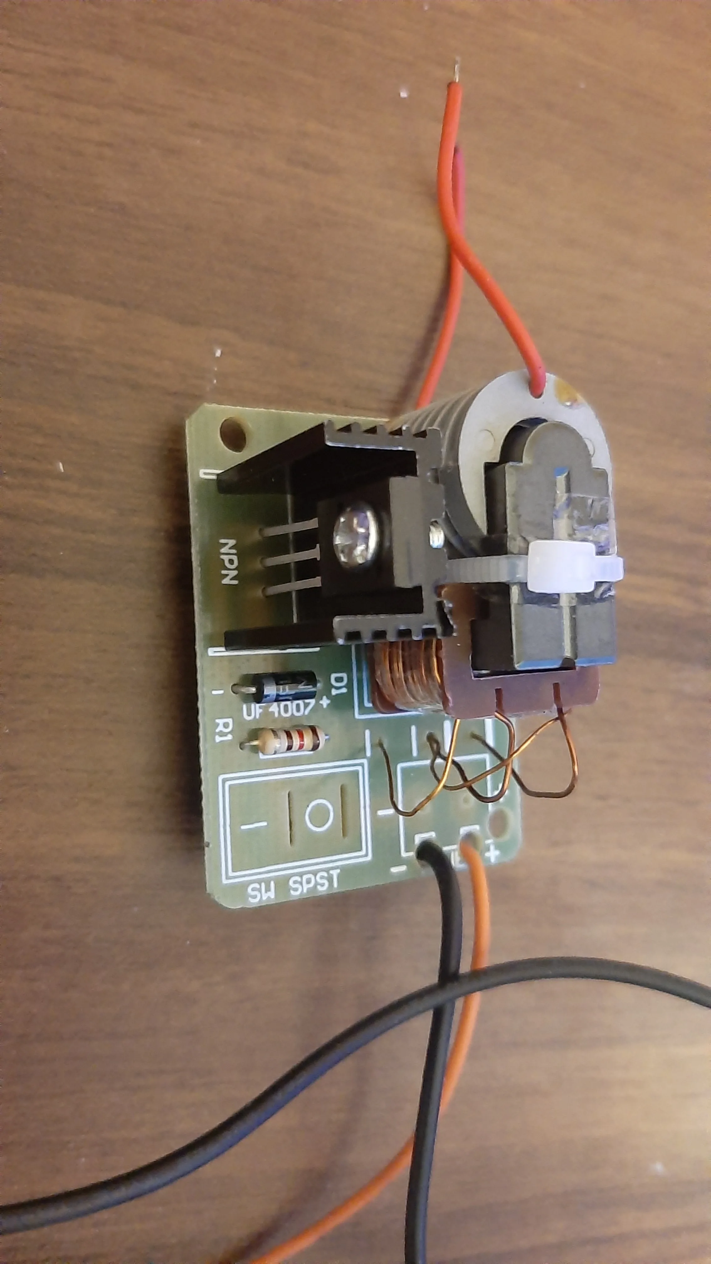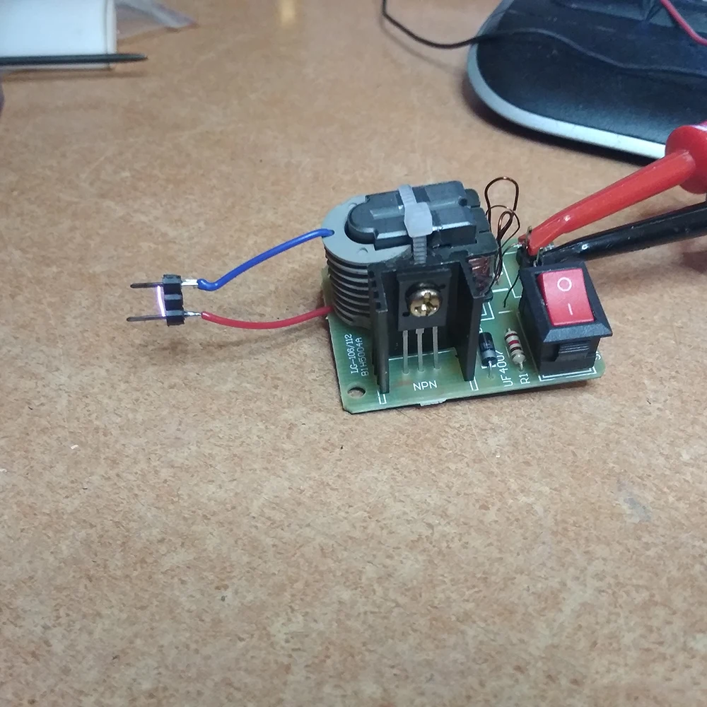 всё на соплях,транзистор ноунейм не тот что в описании,катушка намотана на половину. напряжение от силы 8 000 вольт.