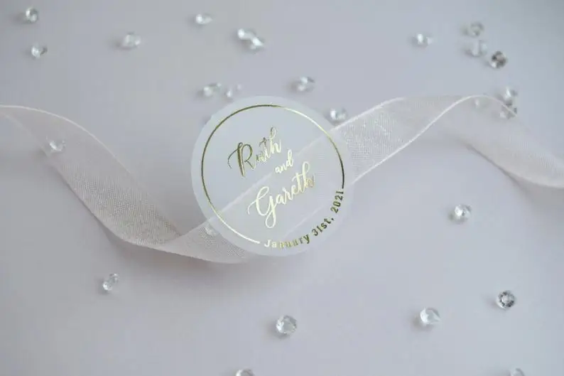 Золотые фольгированные печати для конвертов, персонализированные свадебные наклейки, прозрачные фольгированные, Мы завязываем узлы, наклейки, сохраняем дату, печать для конвертов