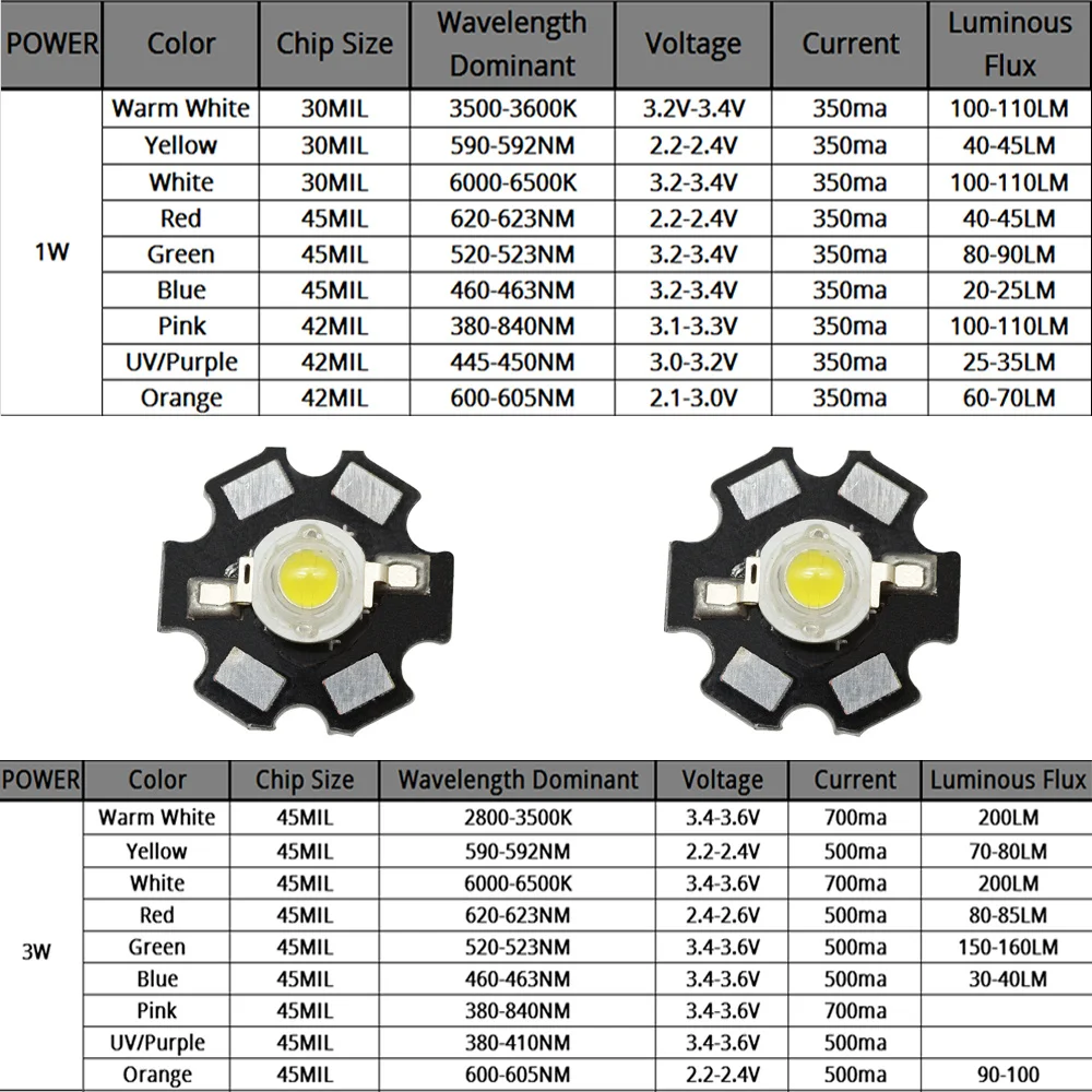10 шт. 1 ВтВысокая мощность 3 вт(Цвет по вашему выбору)