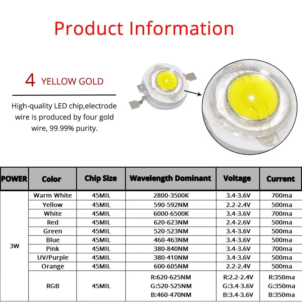 10X 1 Вт 3 Вт чип высокой мощности белый, красный, синий, зеленый с...