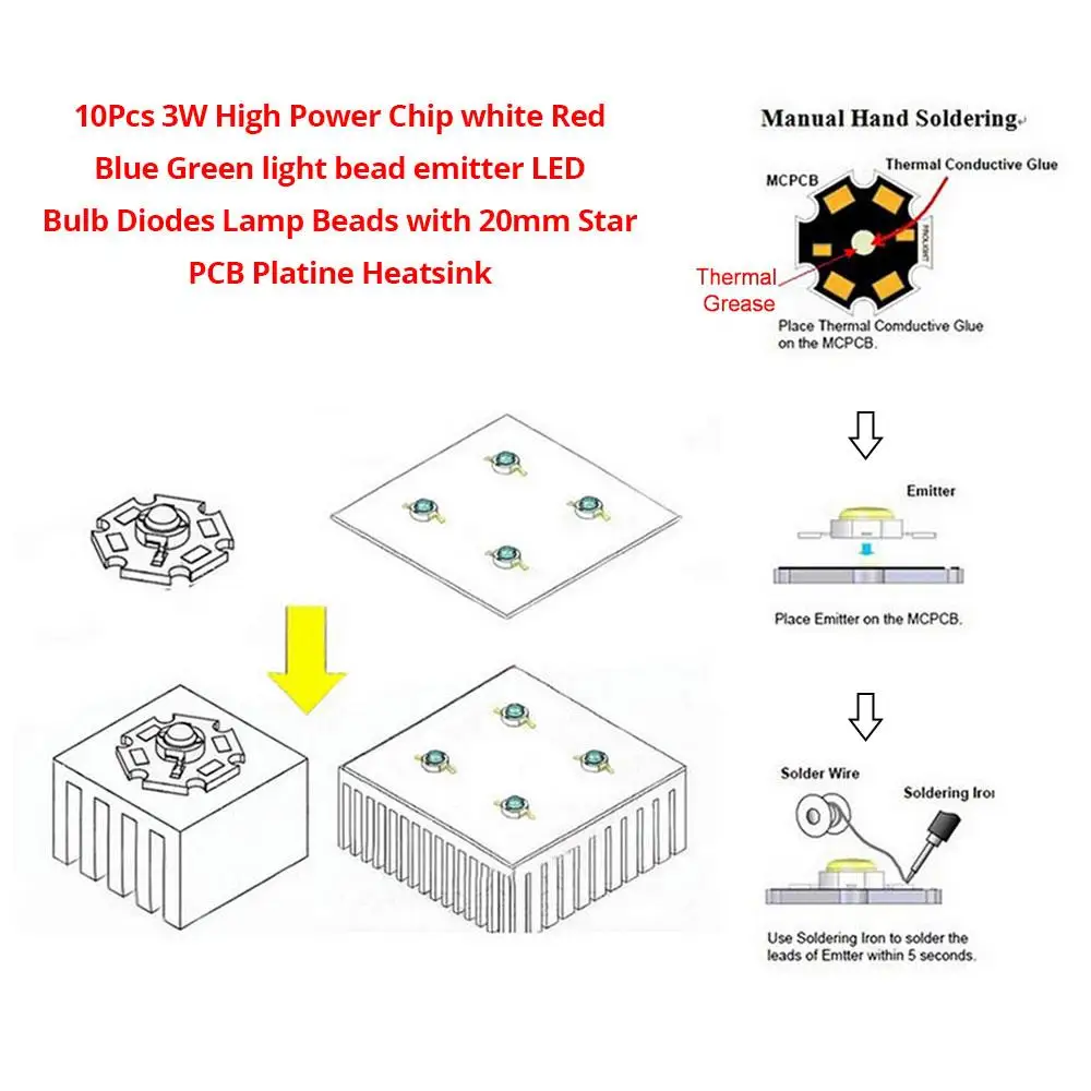 10X мин 1 Вт 3 Вт Высокая мощность белый красный синий зеленый свет Излучатель светодиодный ные лампы Диоды лампы бусины с 20 мм звездной печатной платой Платиновый теплоотвод