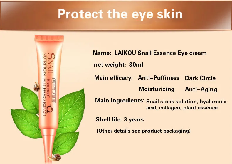 LAIKOU крем для глаз с улиточной слизью, средство для удаления темных кругов под глазами, против старения, против морщин отечности, увлажняющий Уход за глазами