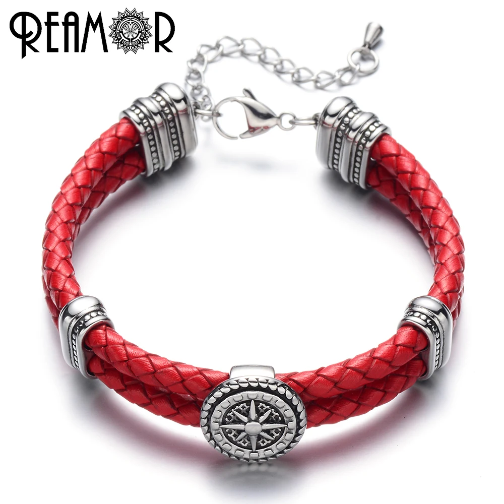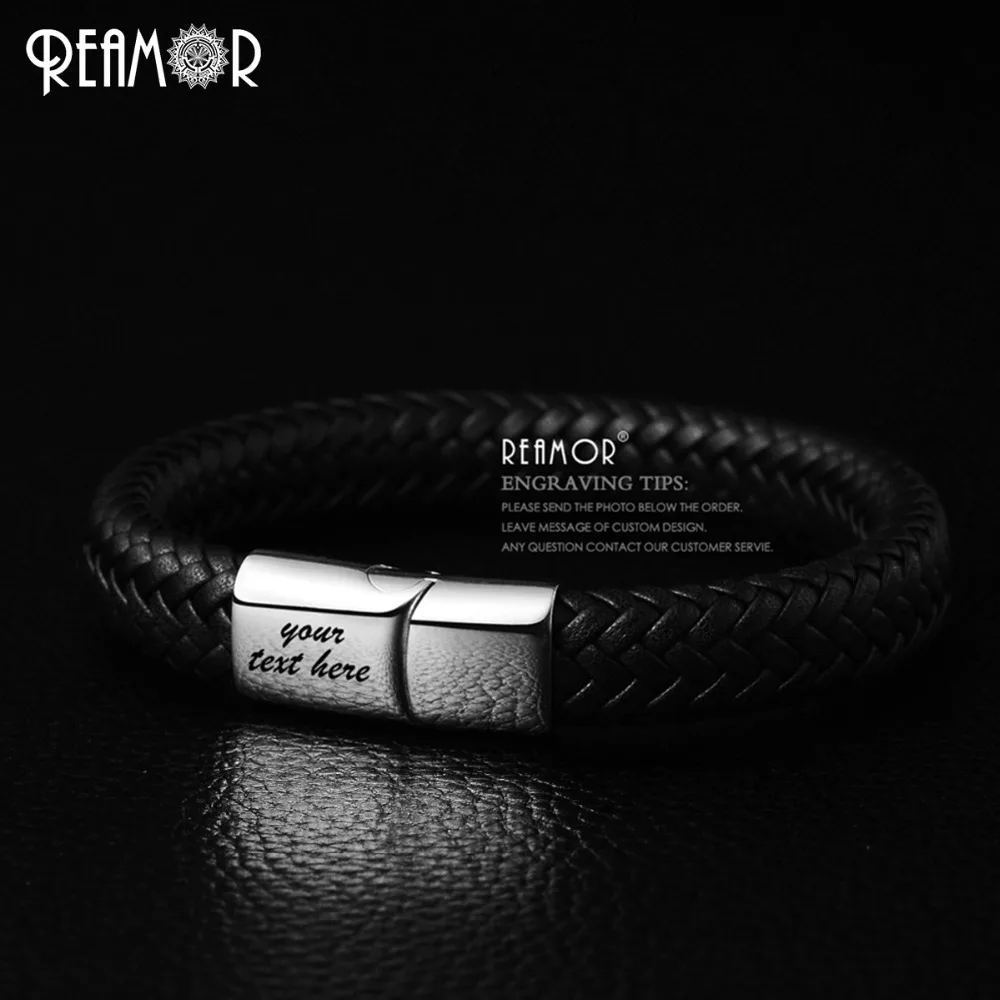 Кожаный плетеный браслет REAMOR, плетеный браслет с цепочкой и заст...