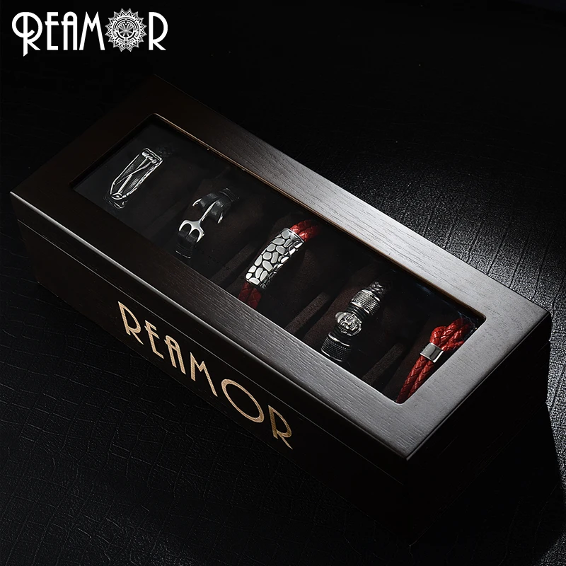 Мужские браслеты REAMOR из нержавеющей стали с бусинами BV полые се...