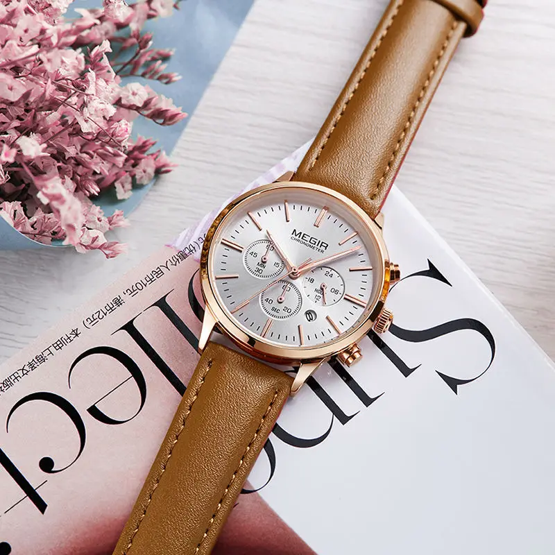 Женские кварцевые часы MEGIR, Роскошные ультратонкие часы с хроногр...