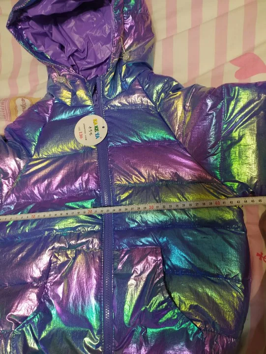 Заказ был сделан 11.11.20г. курточка пришла 15.12.20г. до Краснодарского края г.Новороссийск шла чуть больше месяца. Продавец не сразу отправил.. но был вежлив,и обещал,как можно быстрее отправить.немножко с задержкой пришла,должна была 3 декабря прийти.. дочке понравилась,яркая,на солнышке переливается красиво очень,лёгкая, мягкая, единственное,что ткань сверху правда очень тонкая,как бумага мягкая,если чем то нечайно зацепить,то сразу порвётся,и стрелка пойдёт, на фото видно на солнышке,ожидали немного другого материала и потеплее и плотнее..размер подошёл,на 9лет 125 см, мы взяли 7т,выбирала по размерной сетке продавца,на этикетке написано 140. нам как раз,брали специально без запасов,потому что ребёнок худенький ,а фасон куртки широкий,было бы некрасиво,задувал ветер сильно,и неудобно. В общем всё хорошо,спасибо продавцу,буду заказывать у него ещё, только уточнять материал. ещё заказывали наклейки на одежду,продавец объединил заказ и прислал всё в одно,спасибо)))