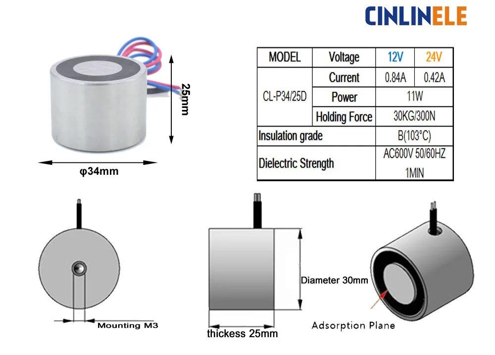 D34mm * H25mm 30KG 300N ток Degauss Электрический магнит магнитный электромагнитный присоска Электромагнит DC 12V 24V мощный редкоземельный