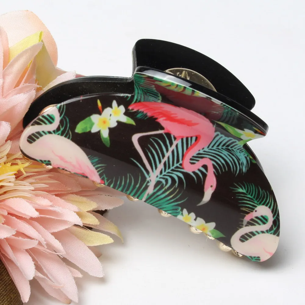 Заколка-краб для волос в горошек, с рисунком фламингоОписание: