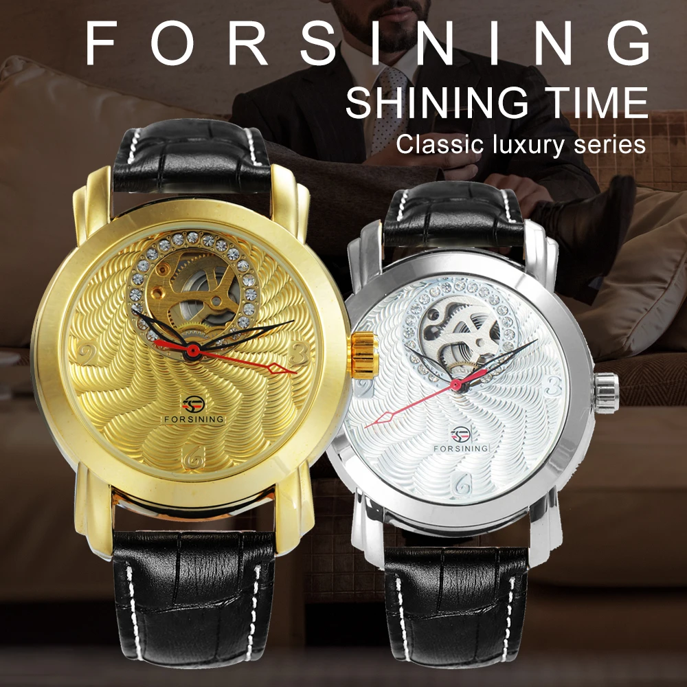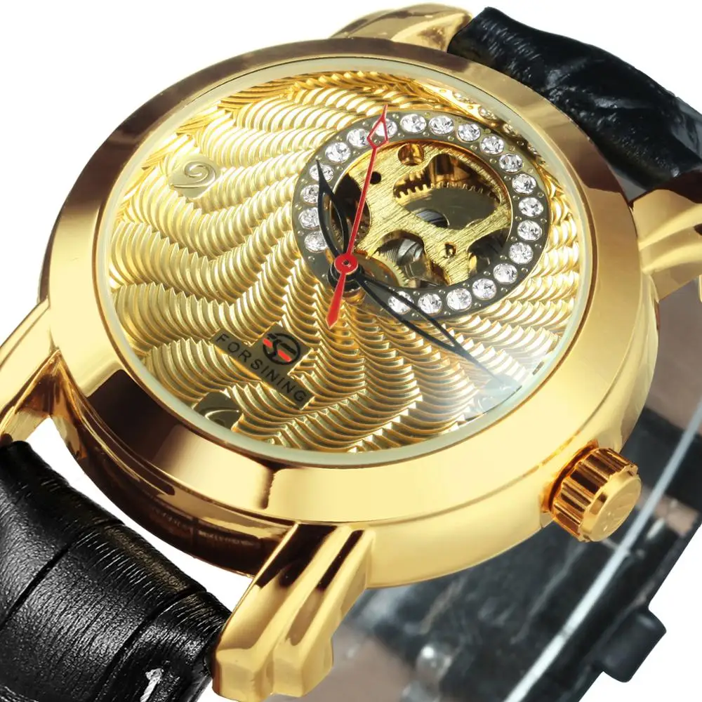 Часы наручные мужские механические, Роскошные автоматические золотистые модные с циферблатом и лувром, для пар