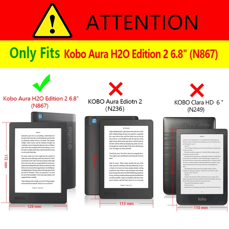 Чехол для 2017 Kobo aura H2o edition 2 6,8 "Водонепроницаемый e-ридер электронная книга PU кожаный чехол умный чехол + подарки