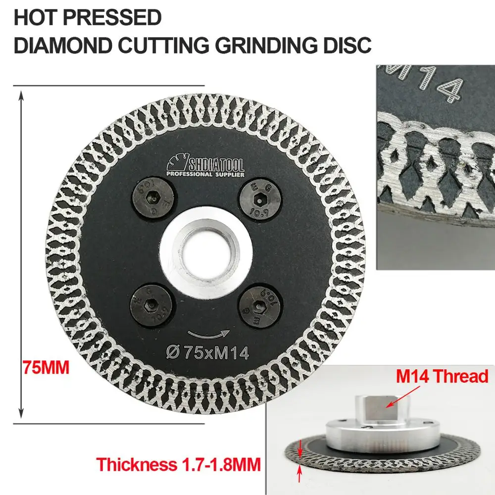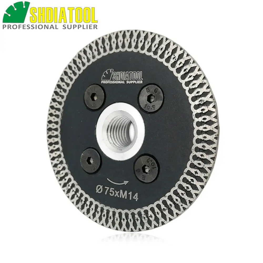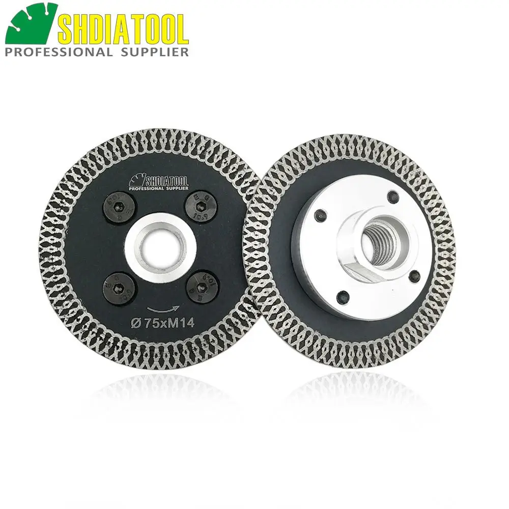 SHDIATOOL 2 шт. 75 мм горячее прессование мини Сетка турбо обод алмазные лезвия со съемным фланцем M14 резьбовое лезвие режущий диск