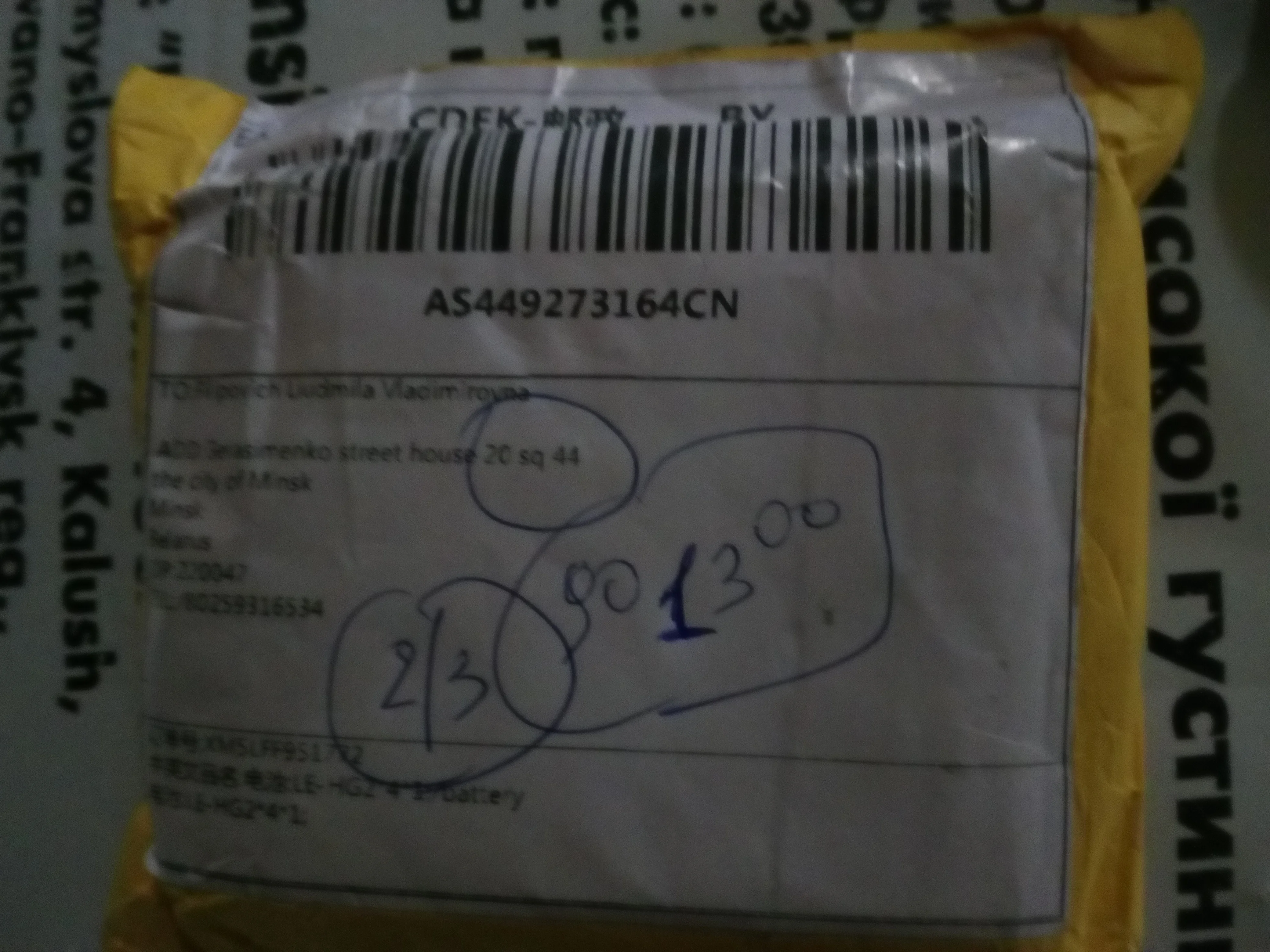 Страна: RU Color: 2PCS Battery Доставка: Seller's Shipping Method 14.12.2020