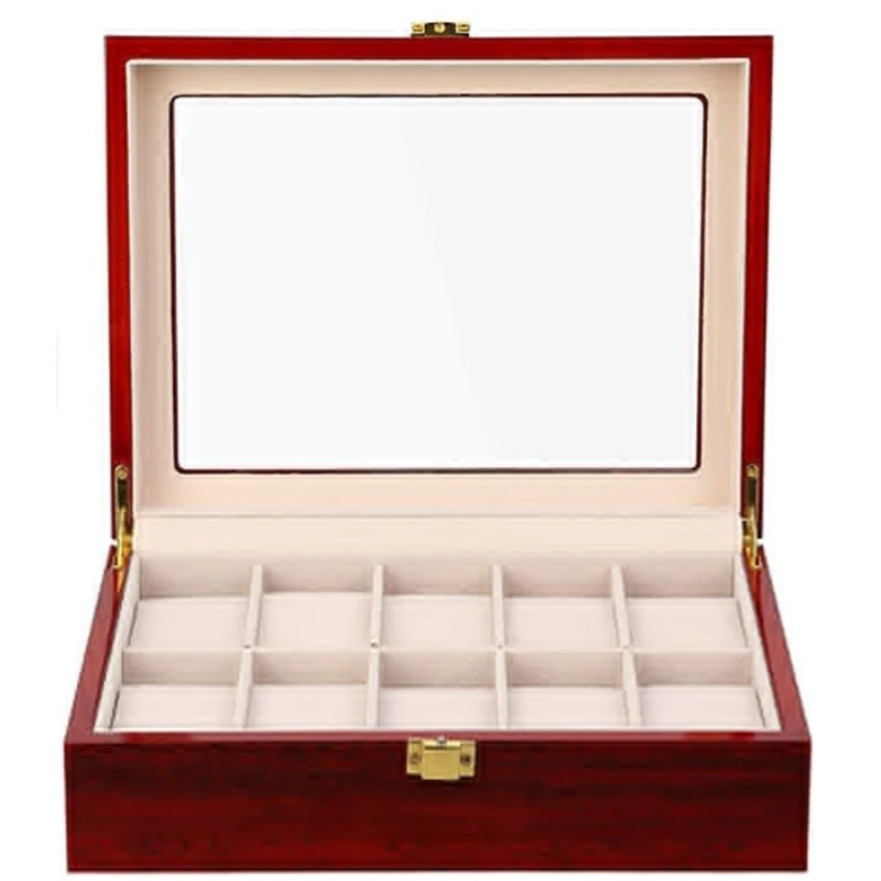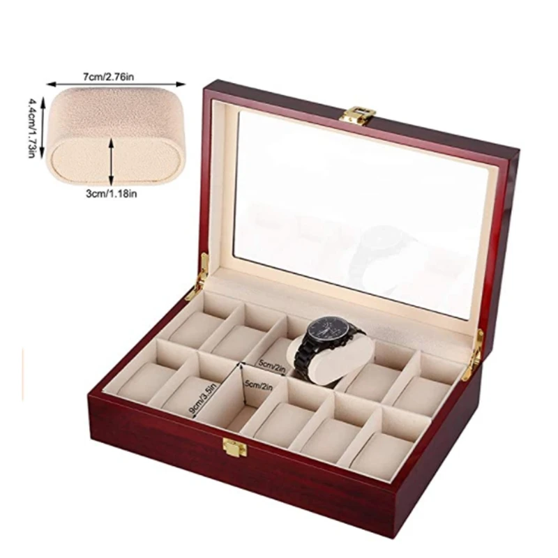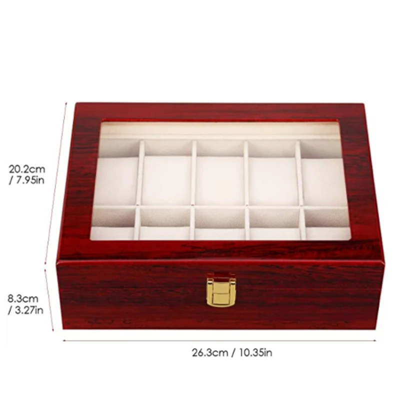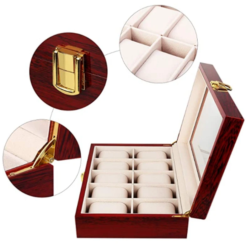 Коробка для хранения часов с 10 отделениямичехол для коллекции ювелирных изделийОрганайзер из деревянного материала, держатель, коробки для часов