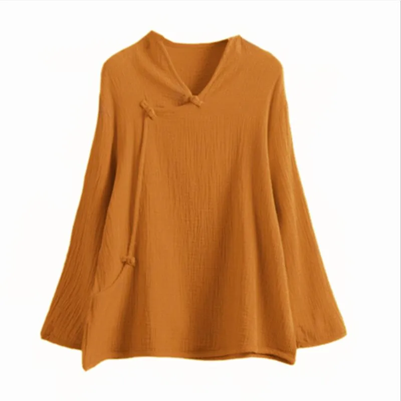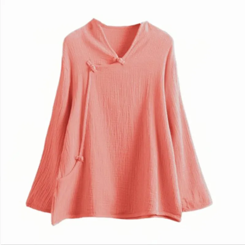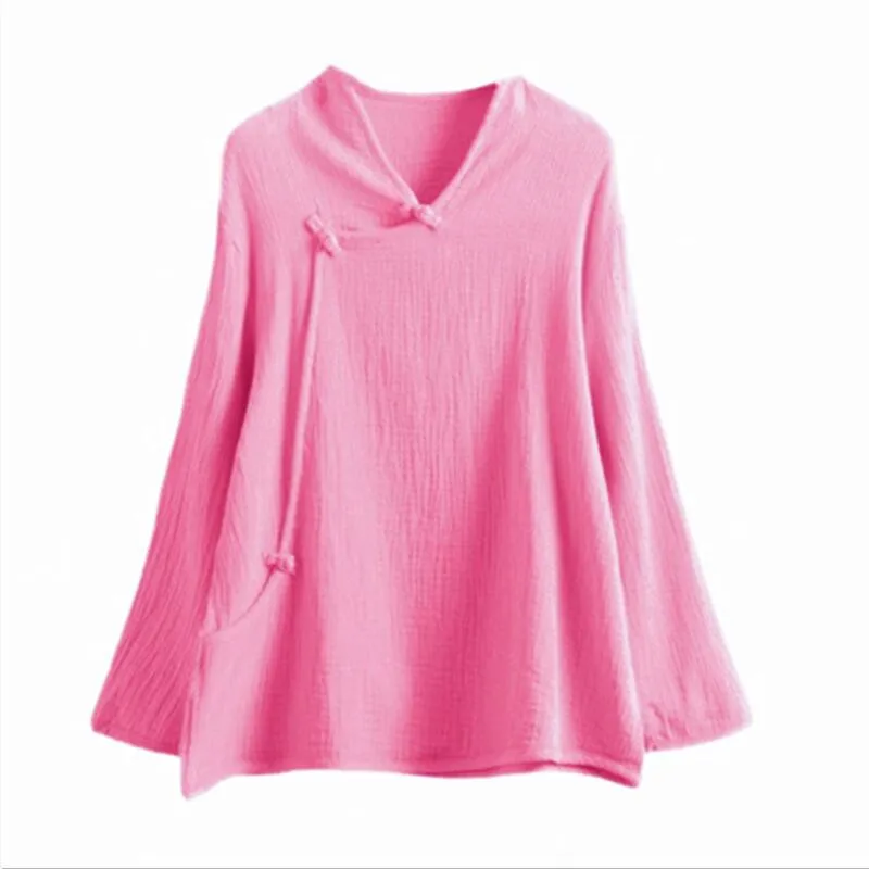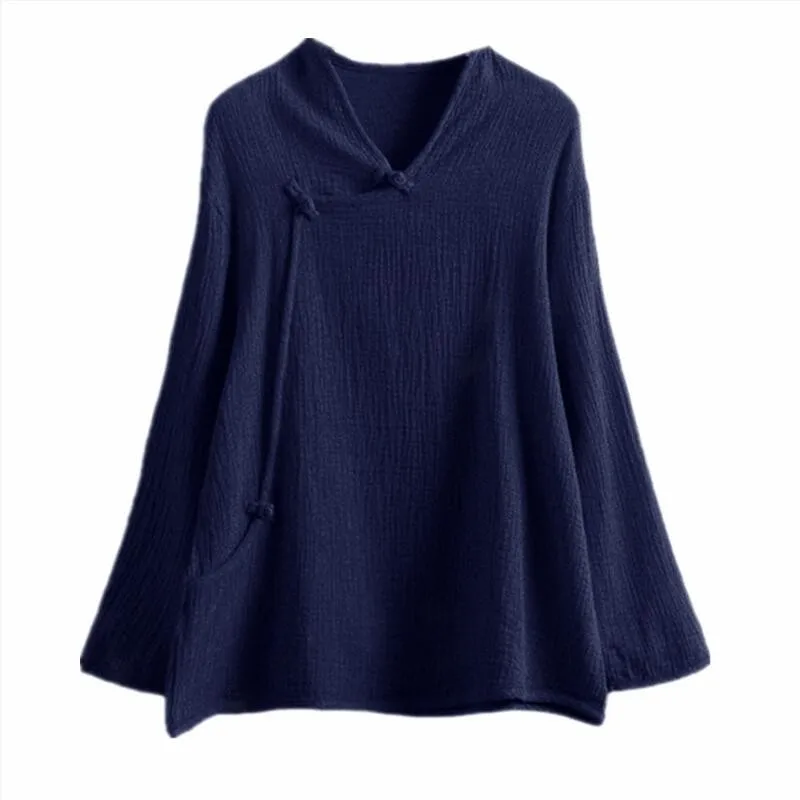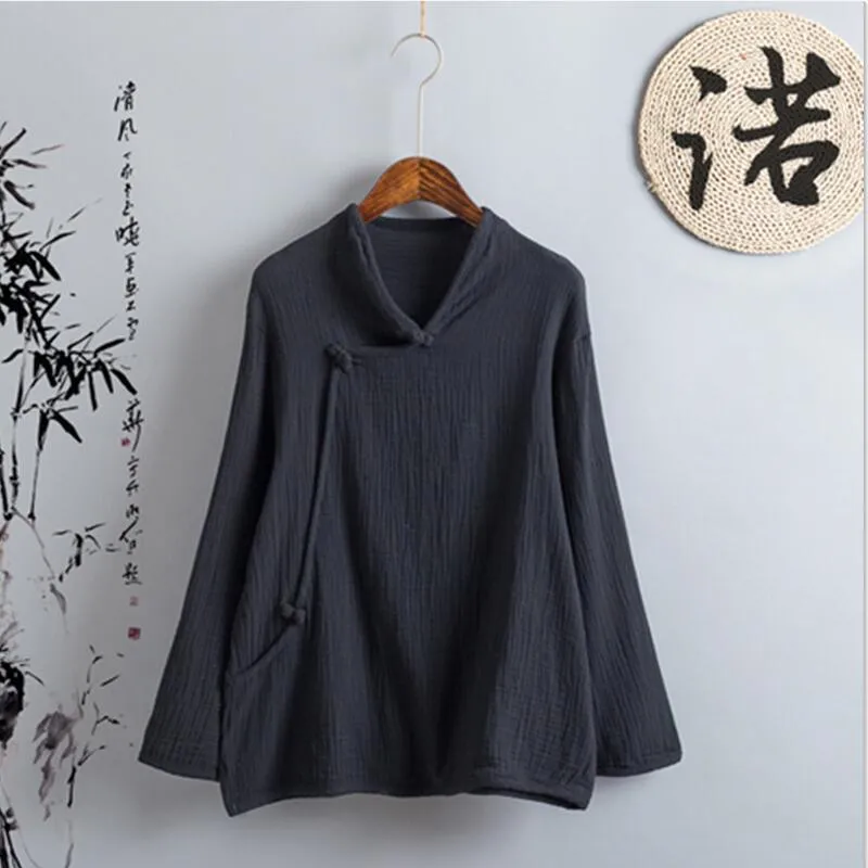 Женская винтажная блузка с длинным рукавом, модная Свободная Повседневная Трикотажная хлопковая льняная рубашка в китайском стиле, размер puls 5XL 6XL, осень 2021