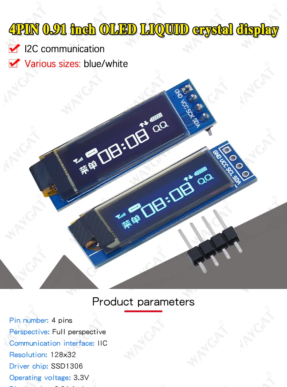 Модуль светодиодного дисплея WAVGAT, 0,91 дюйма, 0,91 дюйма, синий, белый, 0,91X32 O светодиодный ЖК-дисплей, модуль светодиодного дисплея дюйма, IIC Communicate