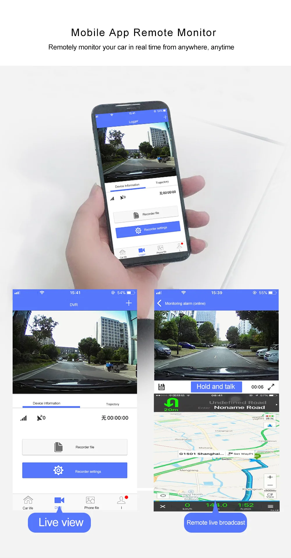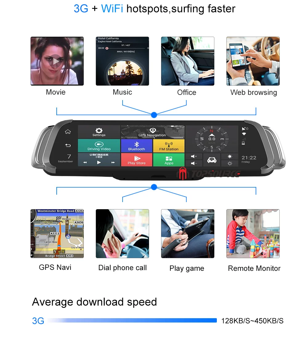 Автомобильный видеорегистратор TOPSOURCE FHD1080, система на базе Android, циклическая запись спереди и сзади, GPS-навигация