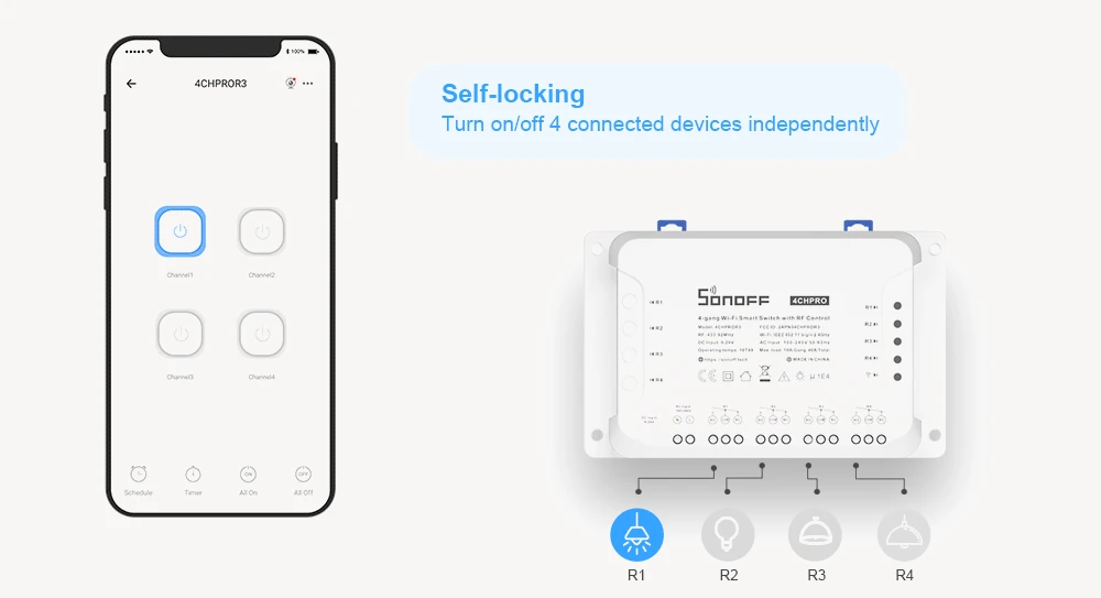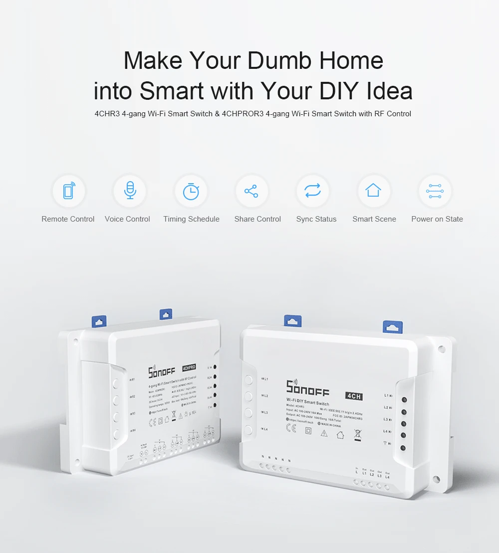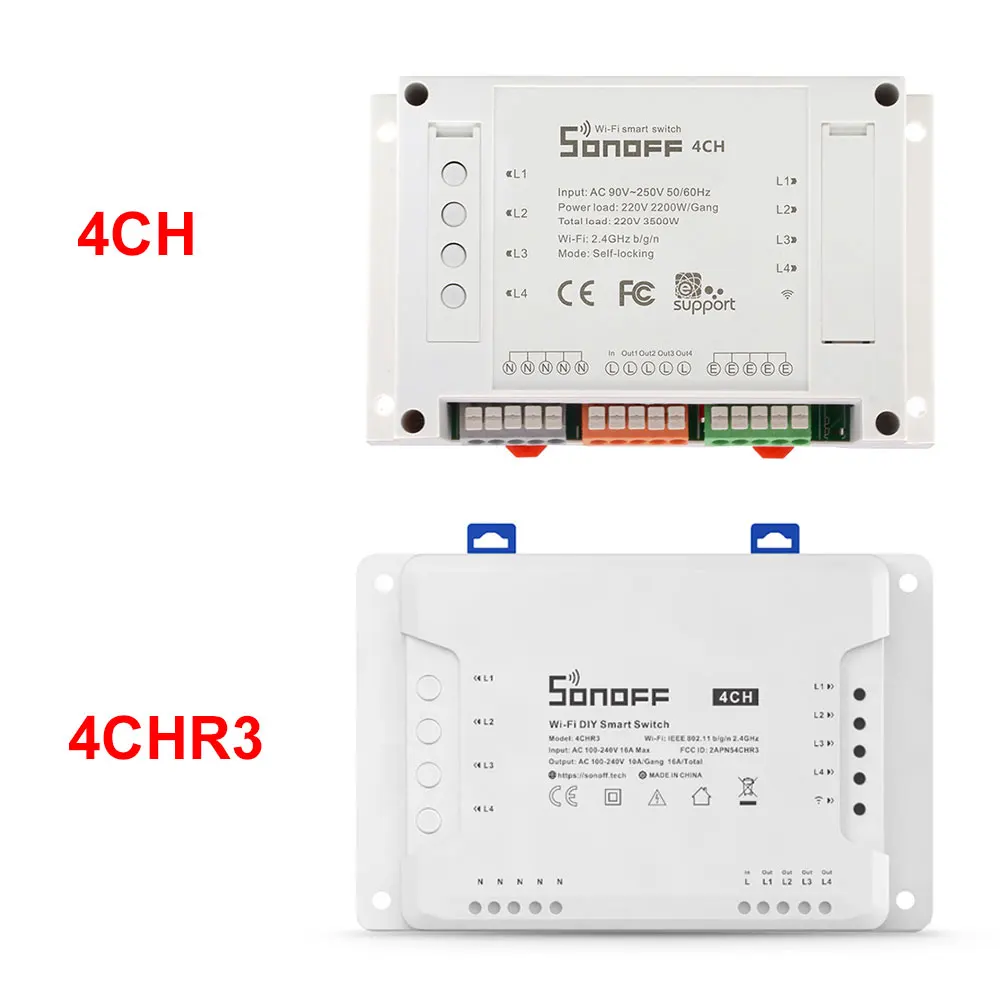 Sonoff 4CH Wifi умный переключатель универсальный дистанционный интеллектуальный выключатель прерыватель 4-канальный din-рейка монтаж умный дом Wi-Fi переключатель работать с Алиса